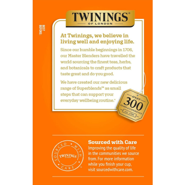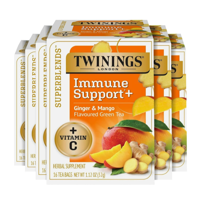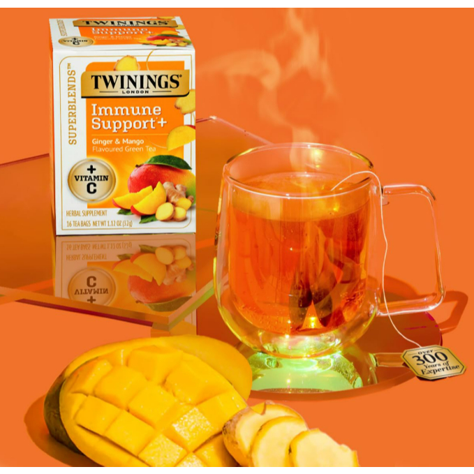 Twinings Superblends Immune Support+ Herbal Tea – Vitamin C, Ginger & Mango, 16 Bags