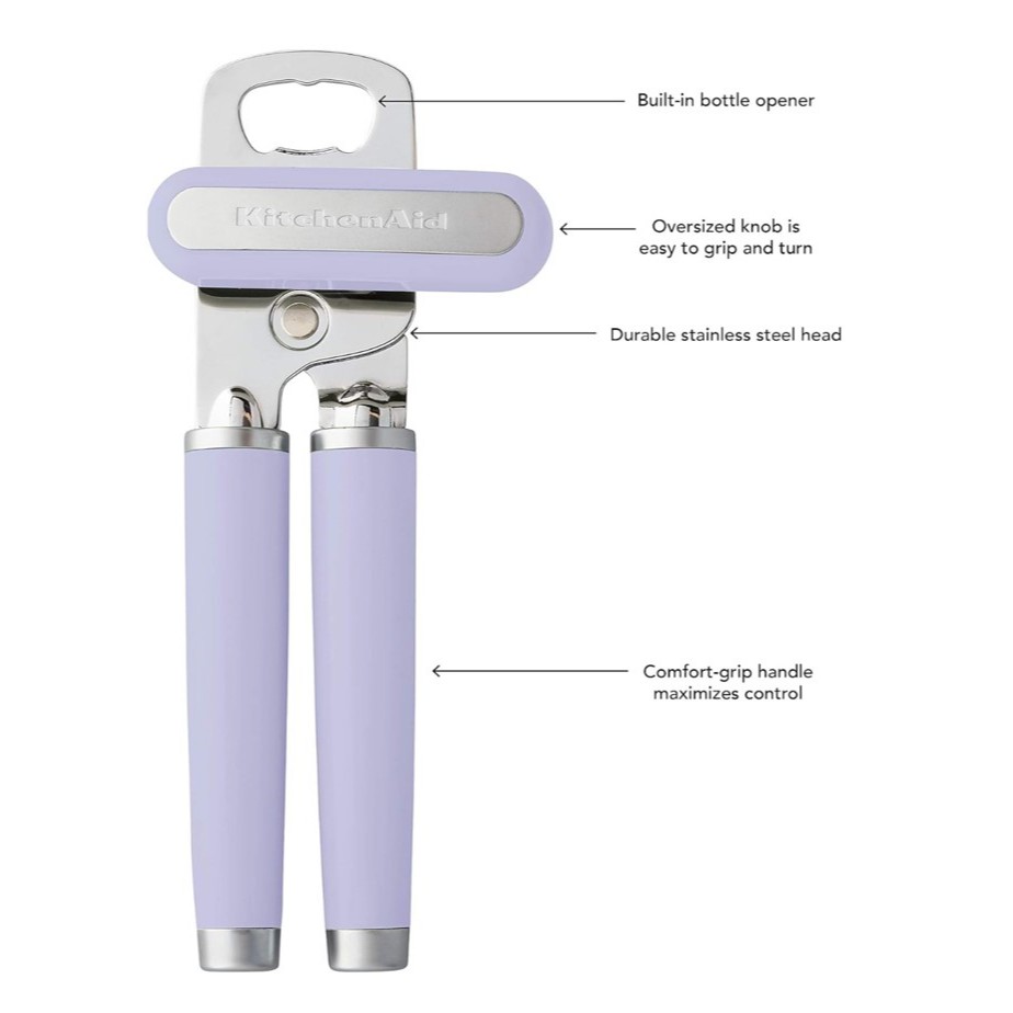 KitchenAid Classic Can Opener + Bottle Opener Stainless Cutting Wheel Soft Handle (Colors)