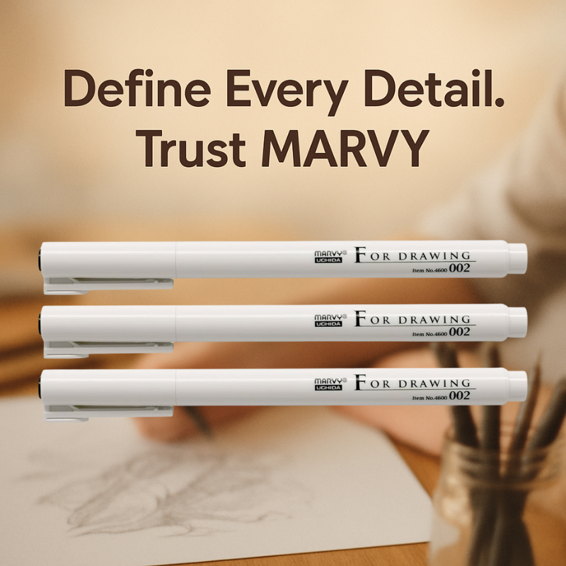 MARVY For Drawing Pen Set – 0.02mm Black Fine Liners, 3pc for Sketch & Illustration