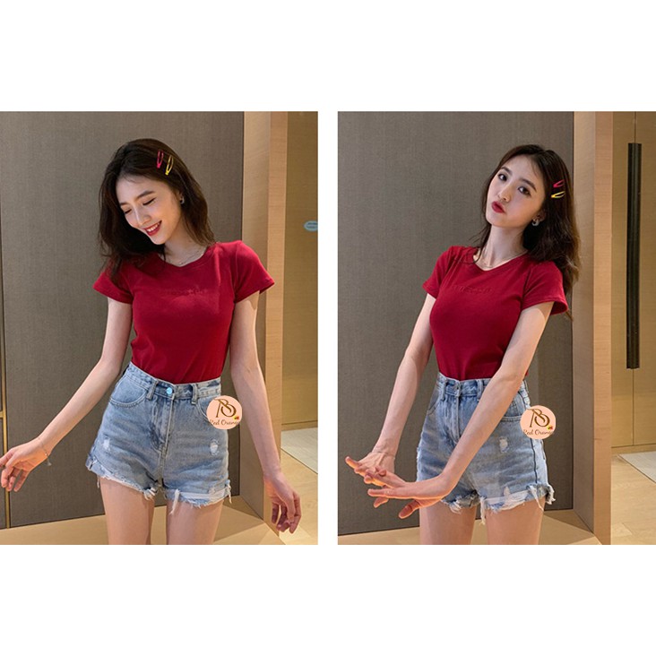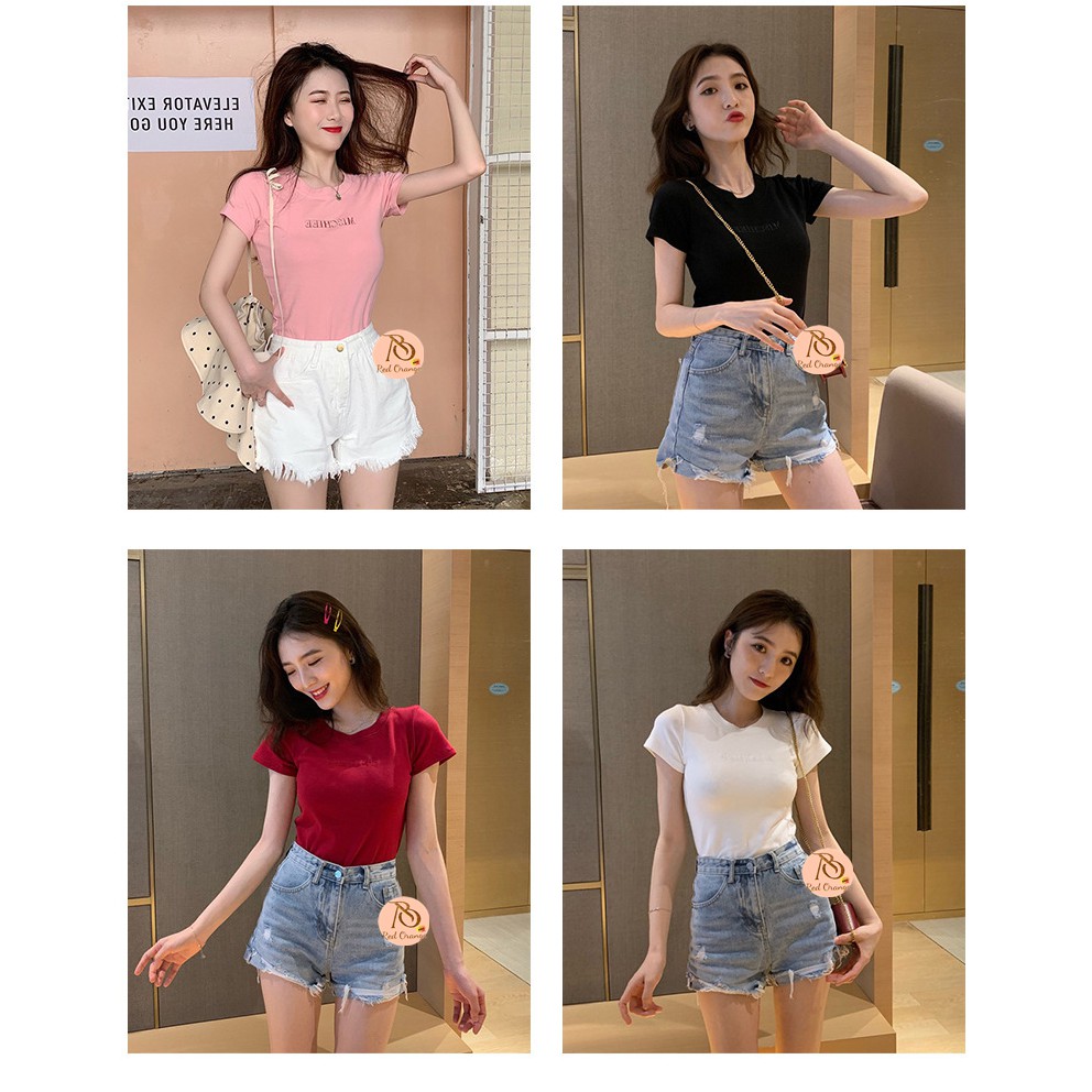 R&O Korean Style Cotton Spandex Casual Fit Tees Short Sleeve Top 914
