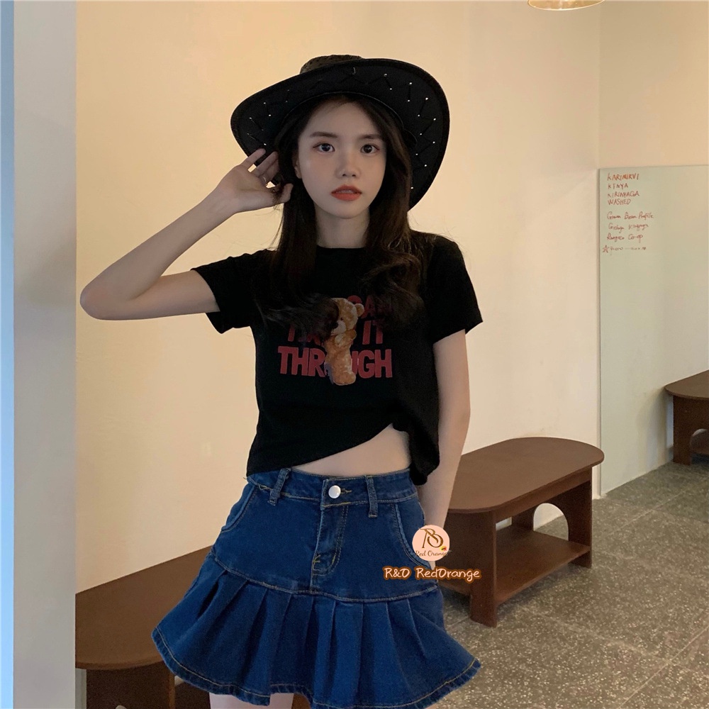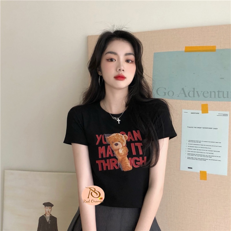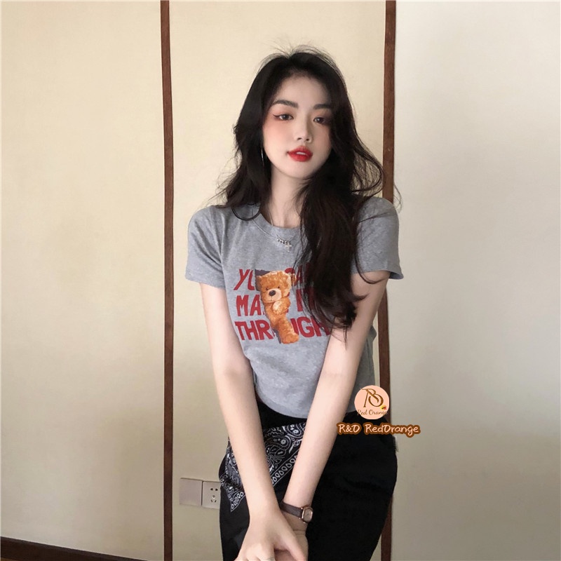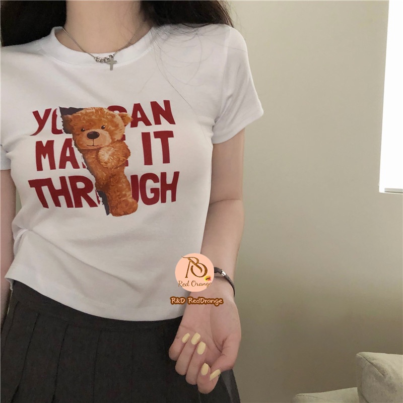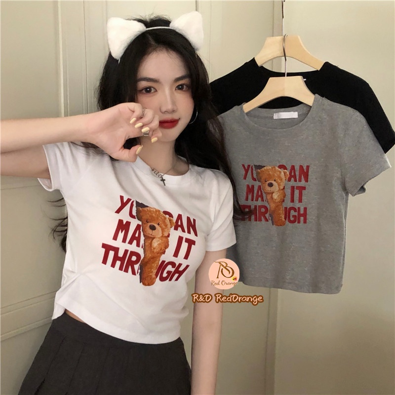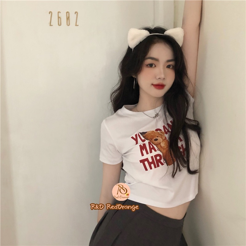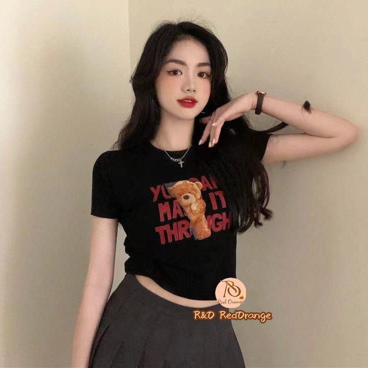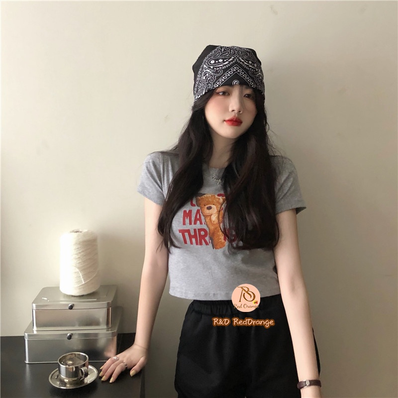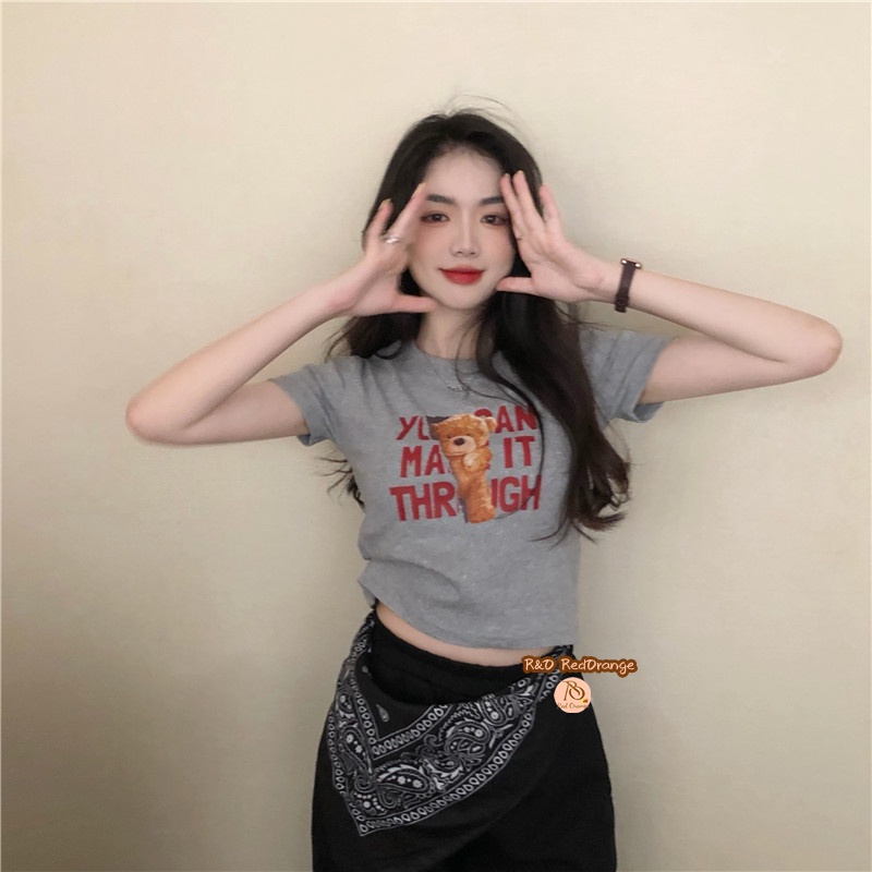 R&O Korean Style Bear Printed Short Sleeve Tshirt tees Crop Top 6674