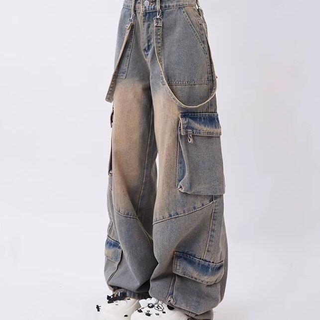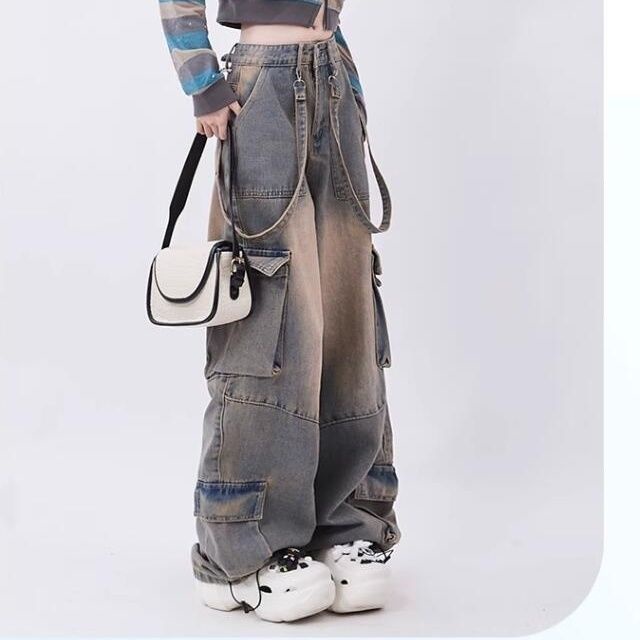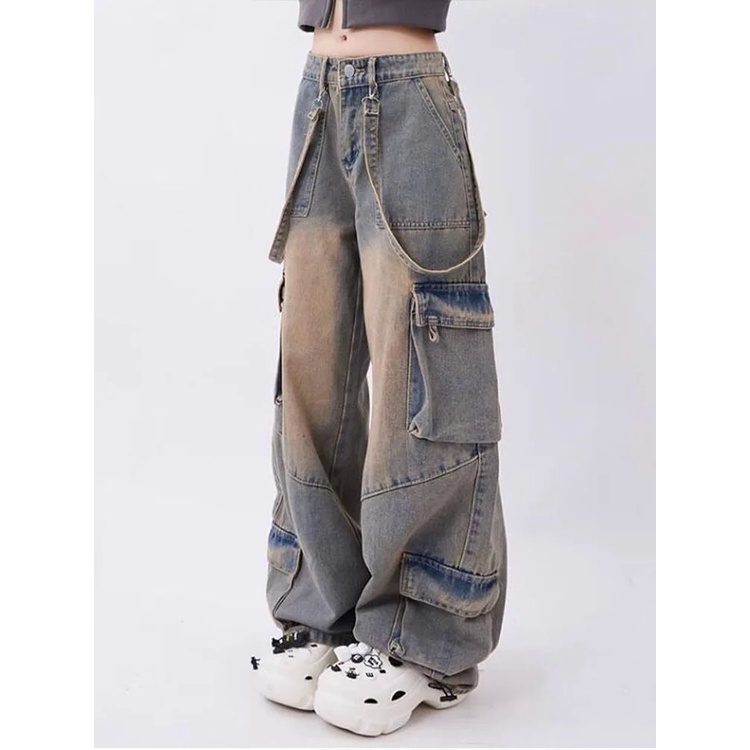 ZH【 Ready Stock】American Retro Jeans Wide Leg Baggy Pants Streetwear Trousers Y2k Fashion 2023 Spice Girls Denim Pants Straight Jeans