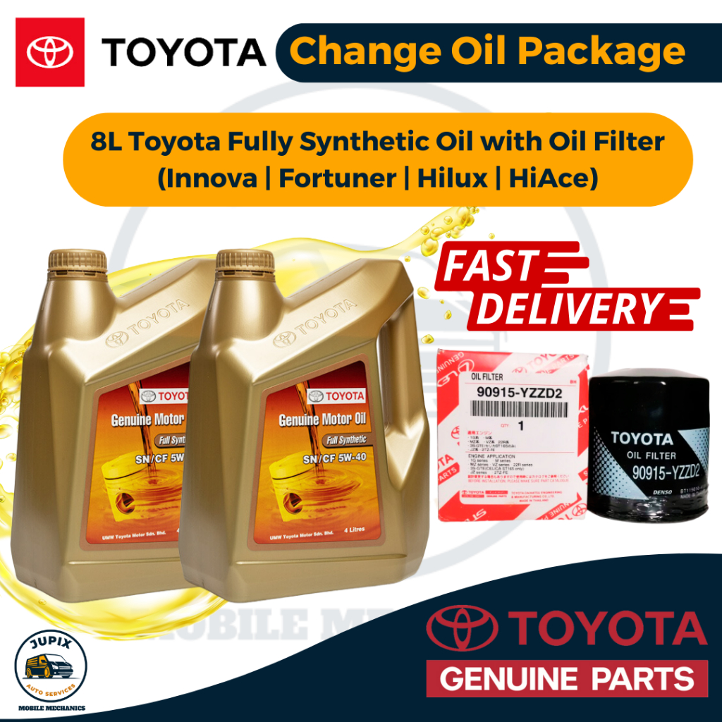 Toyota Fully Synthetic Engine Oil 5W-40 [8 Liters + Oil Filter] Oil Change for Diesel/Gas