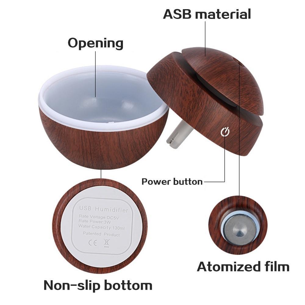 130ML Mine Air Humidifier Essential Oil Diffuser With Cool Mist LED Lights Wood Grain