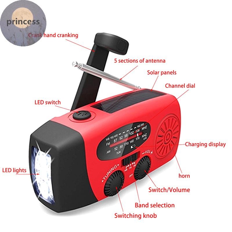 Princes Emergency Hand Crank Radio With LED Flashlight For Emergency Portable Weather Radio For Camping Outdoors Emergency Radio PH