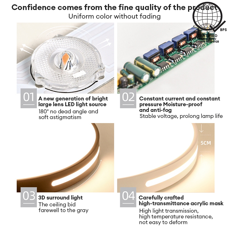 Gogeous Tri Color Ceiling Light Chandelier Room Lamp 12W 18W 24W 36W 48W For Bedroom Living Room Lighting