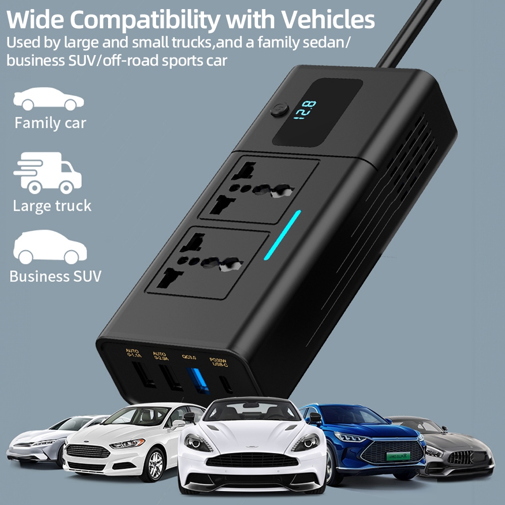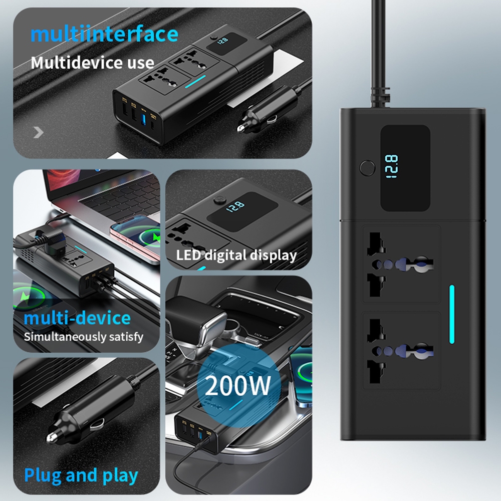 GOOJODOQ 200W Car Power Inverter Household Converter USB Ports Multi-Function Socket Car Inverter