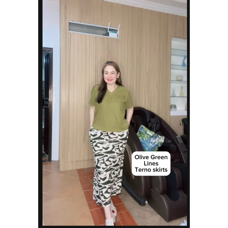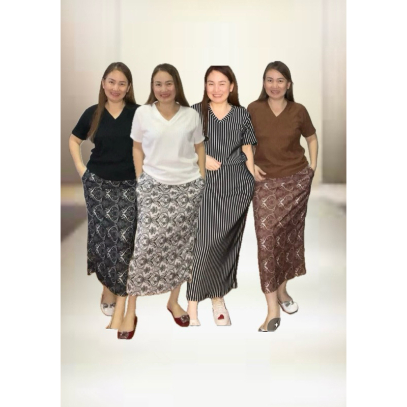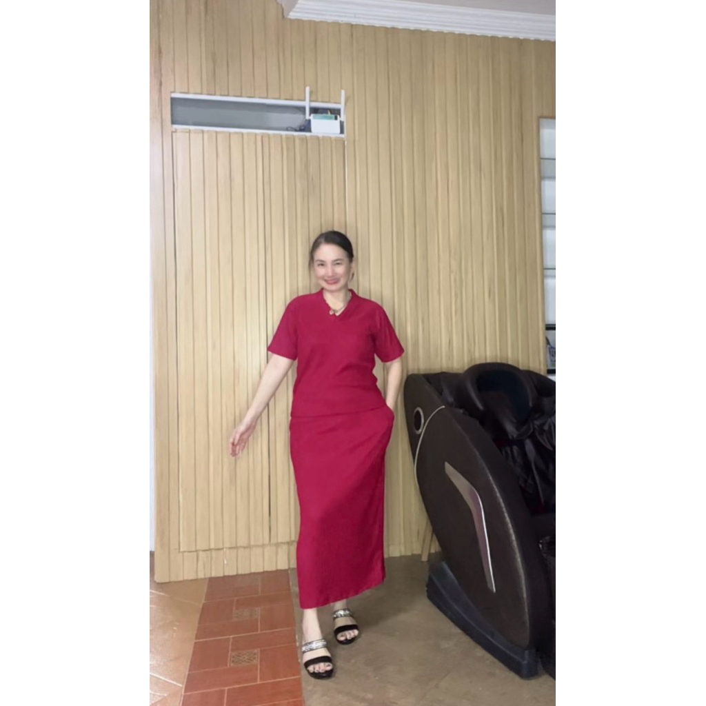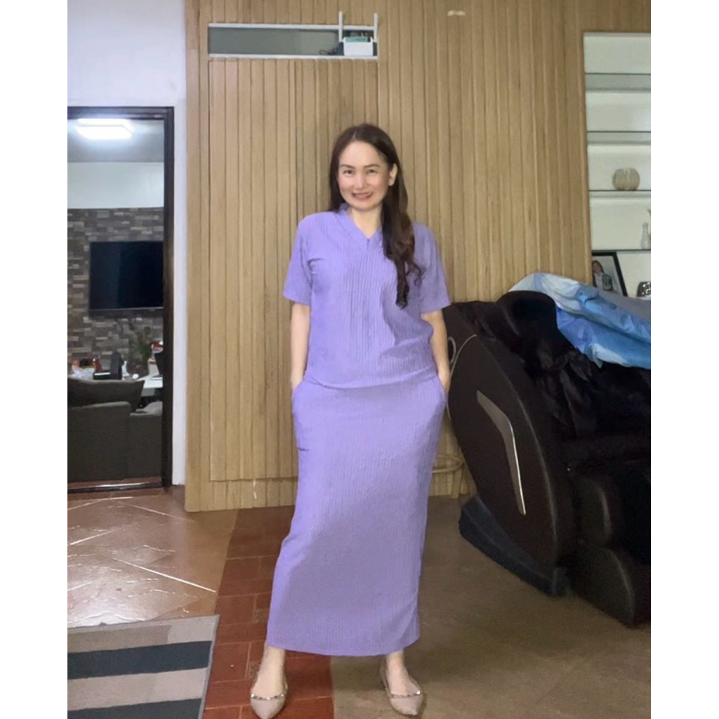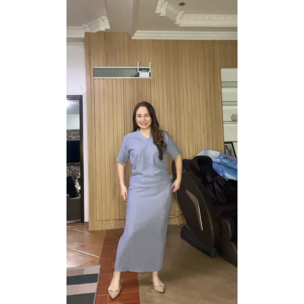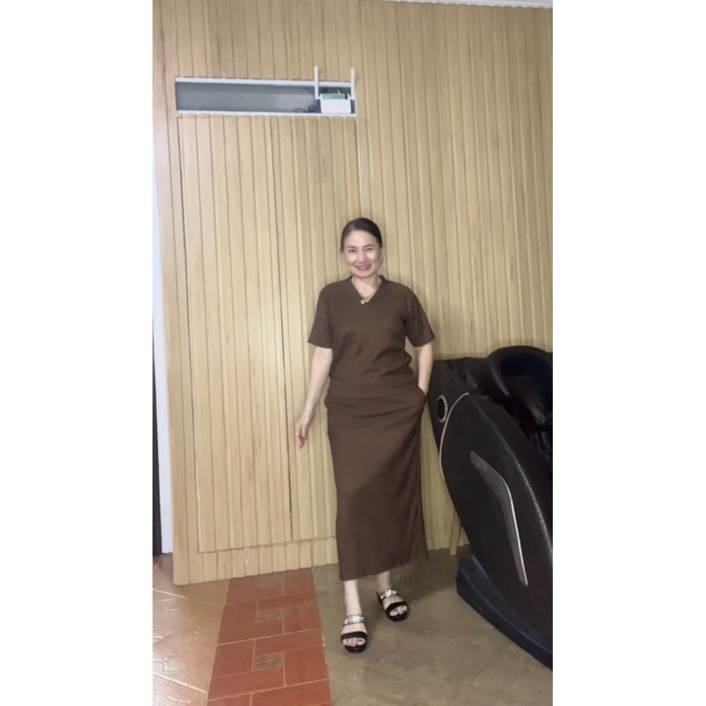 COLINE terno vneck shirt and maxi skirt Large to 2XL barkcrepe