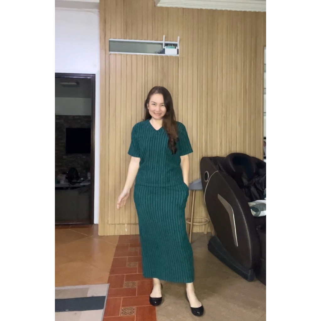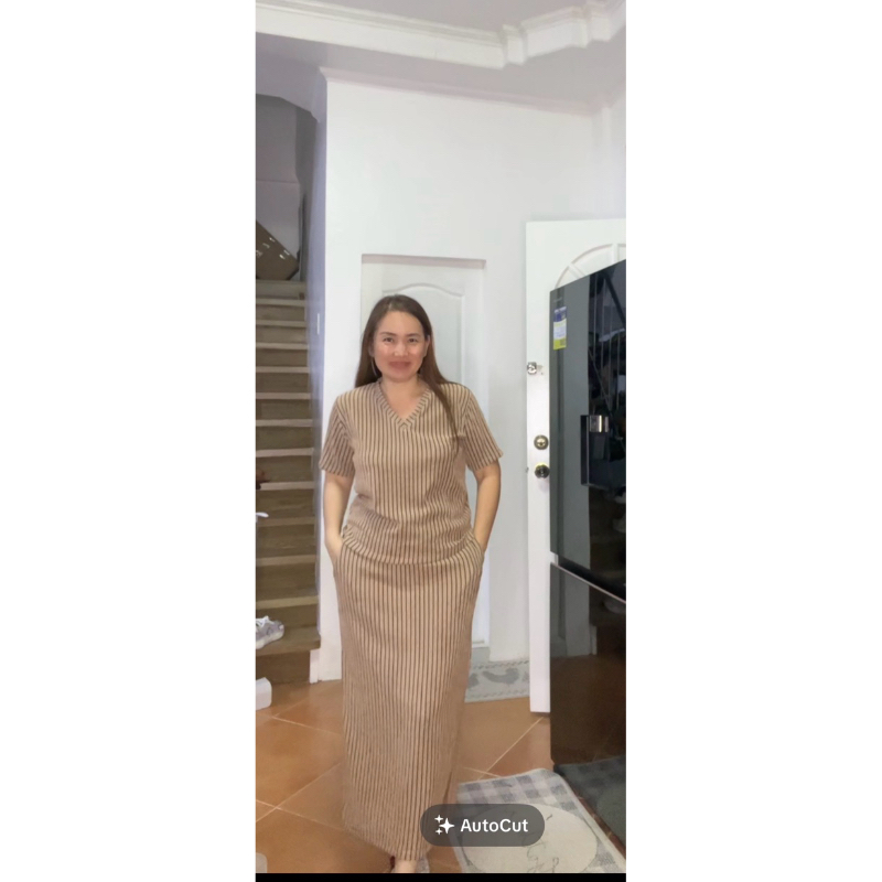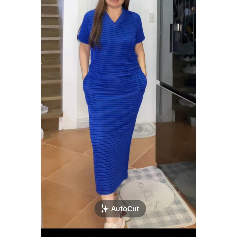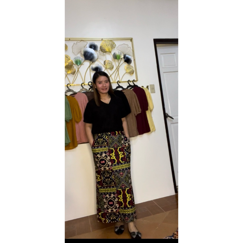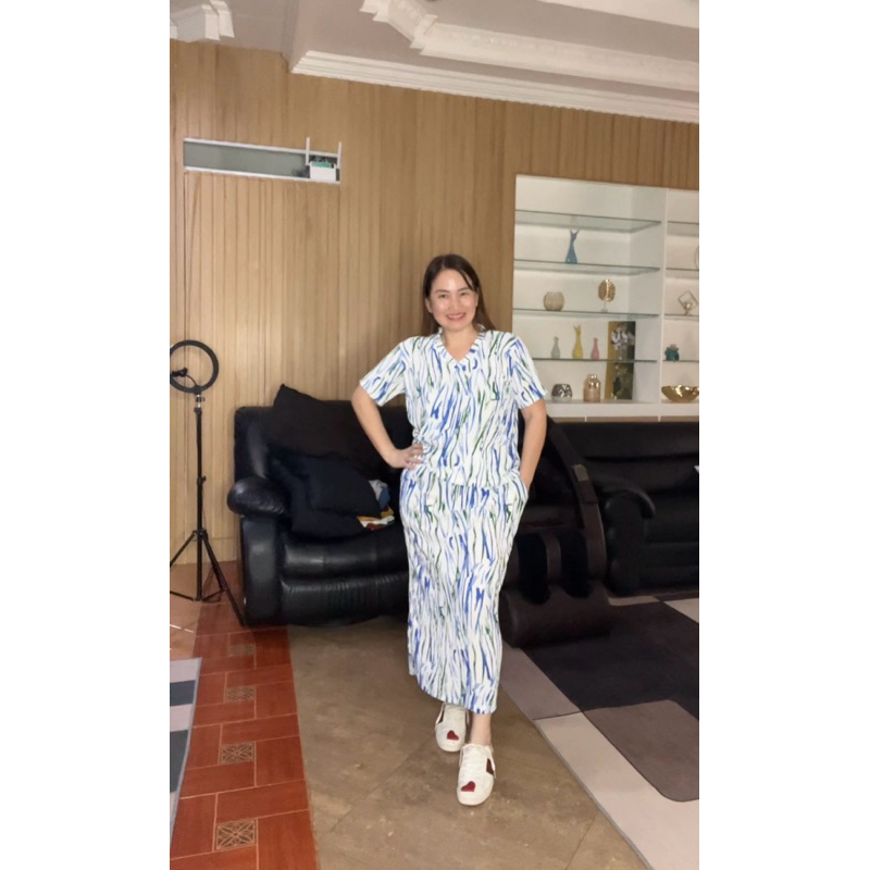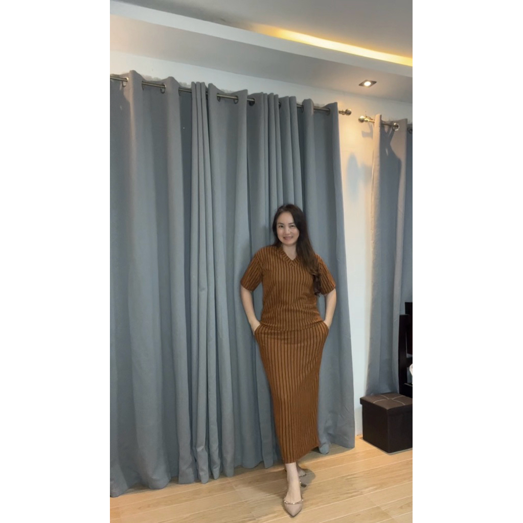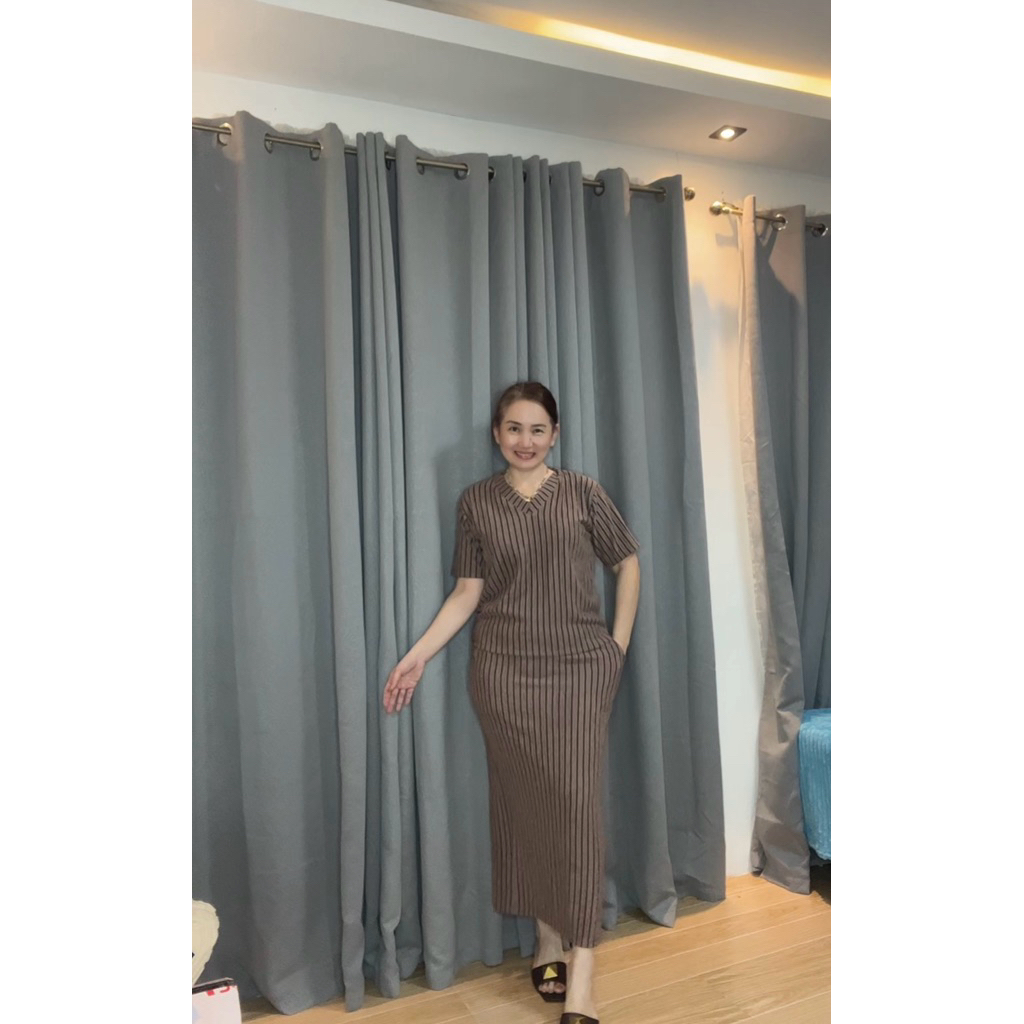 COLINE terno vneck shirt and maxi skirt Large to 2XL barkcrepe