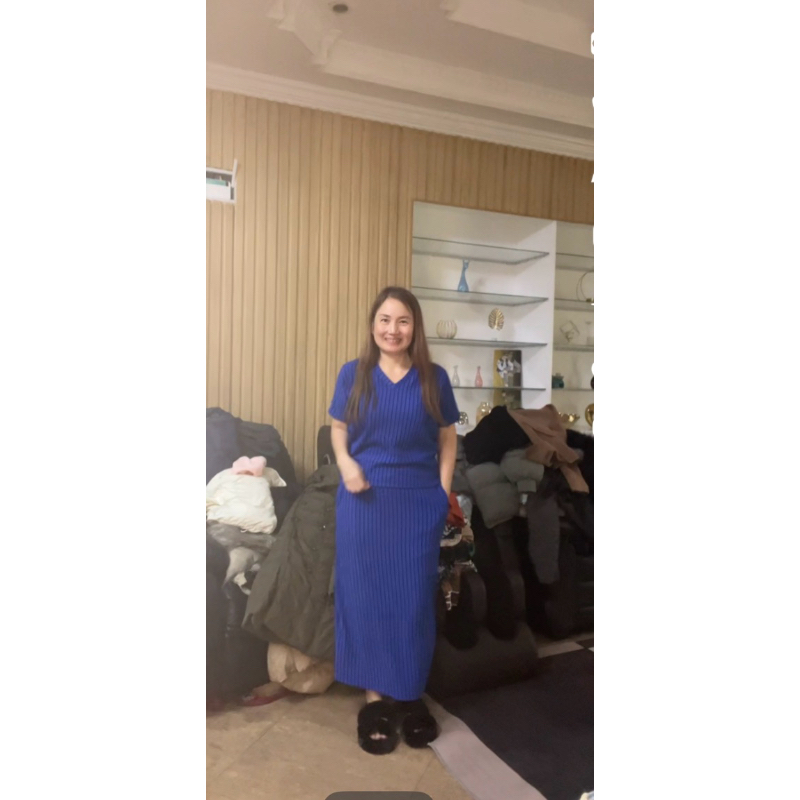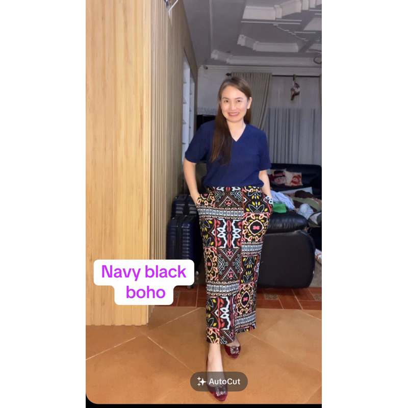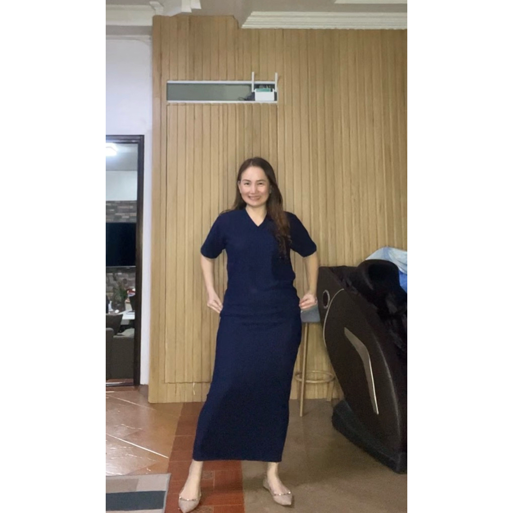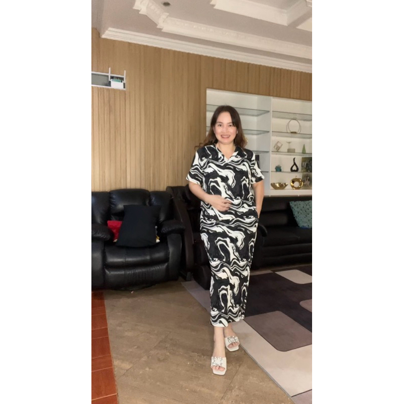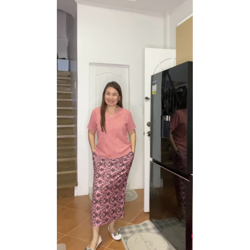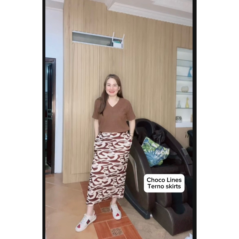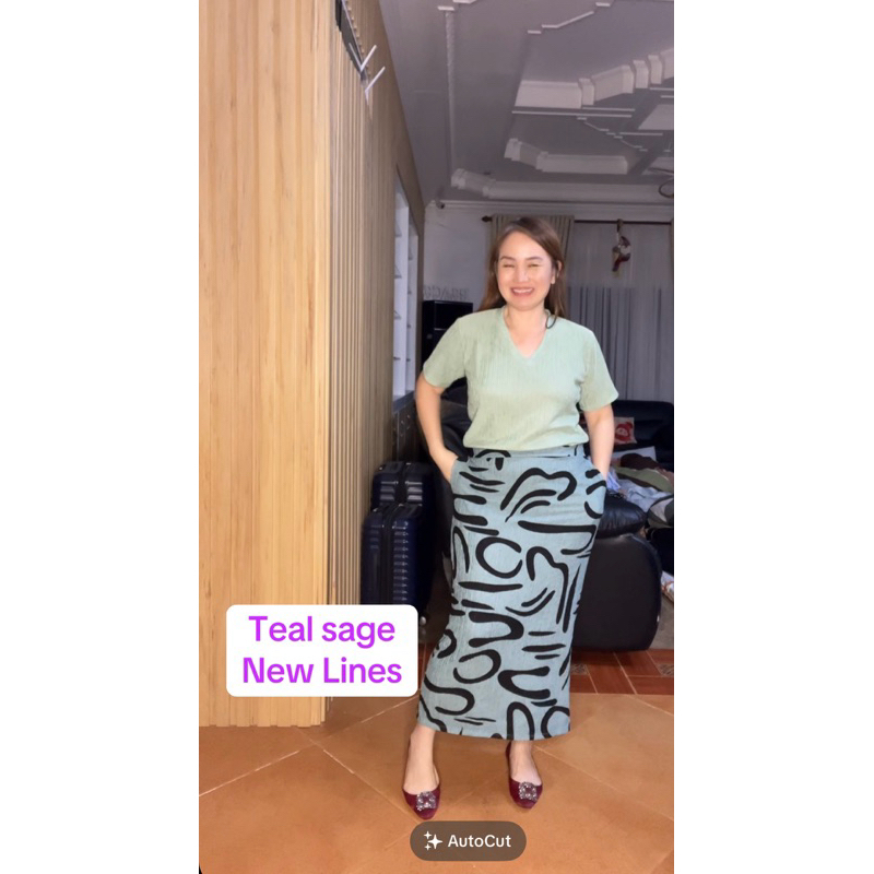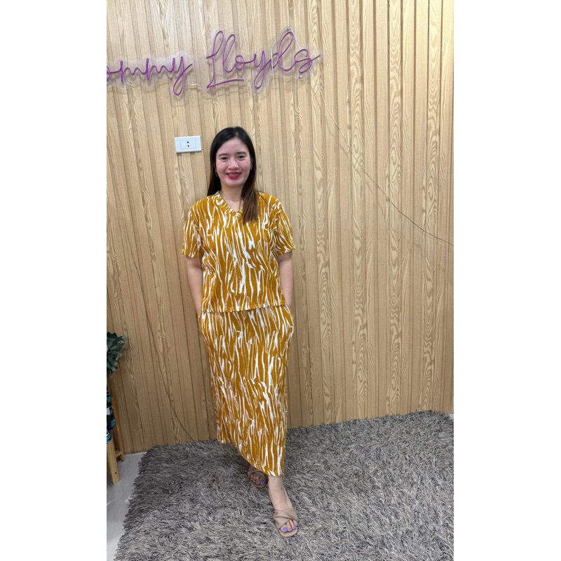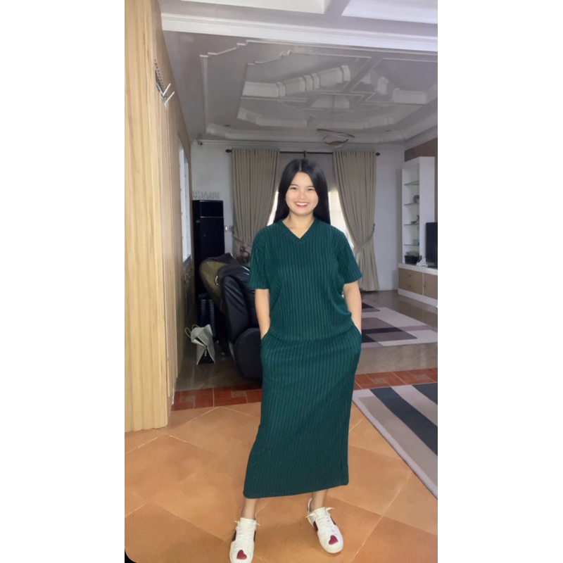 COLINE terno vneck shirt and maxi skirt Large to 2XL barkcrepe