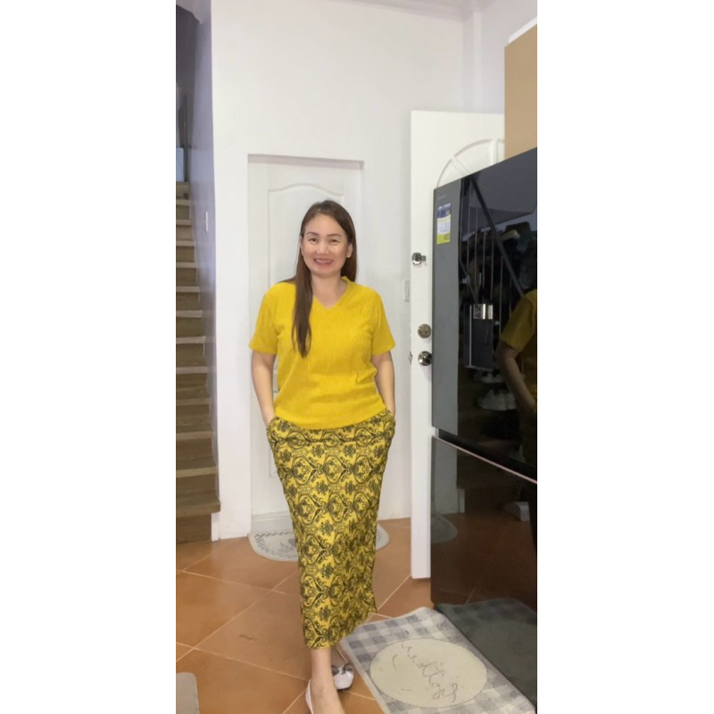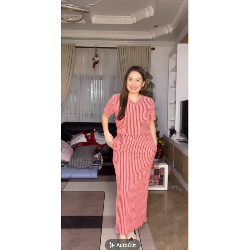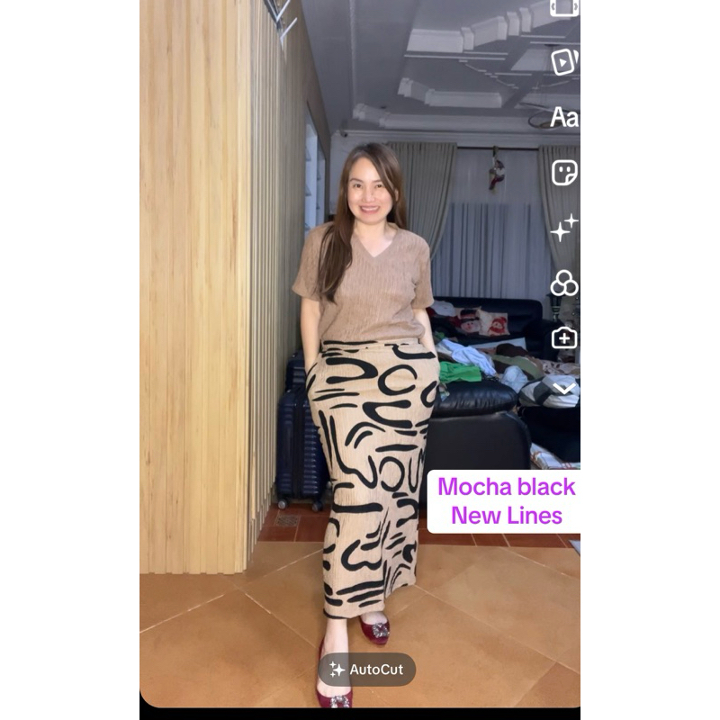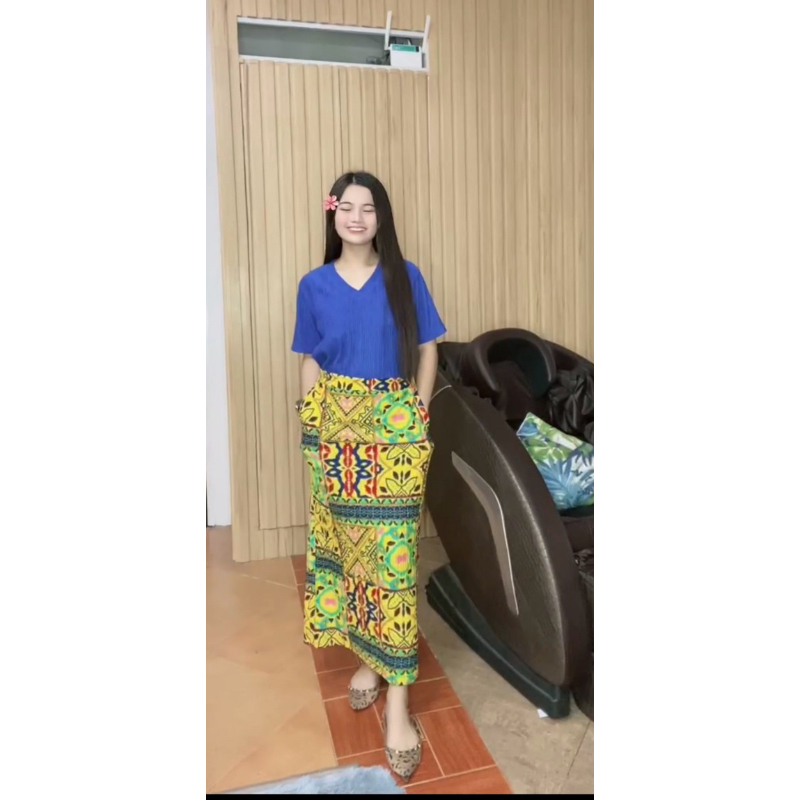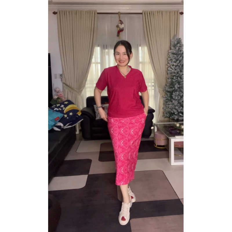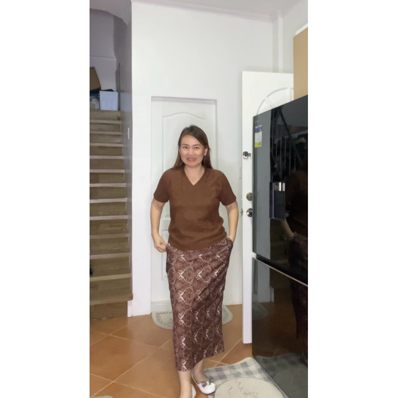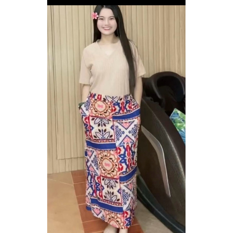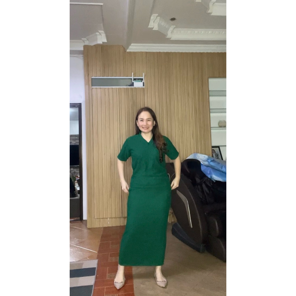 COLINE terno vneck shirt and maxi skirt Large to 2XL barkcrepe