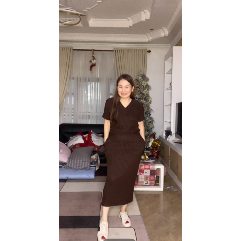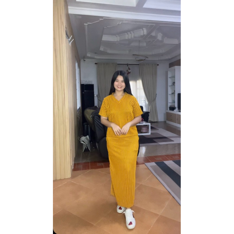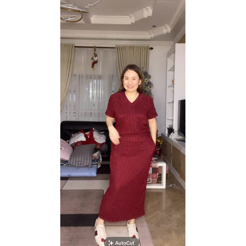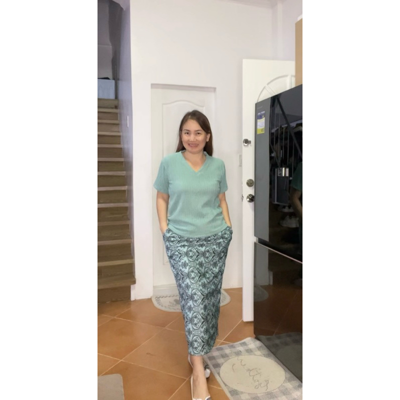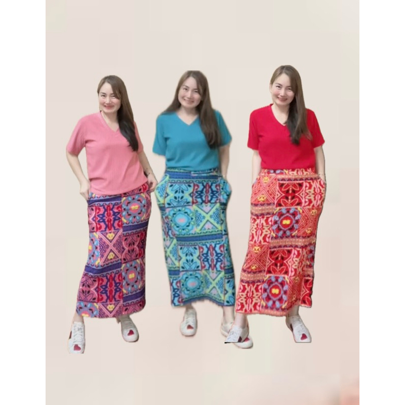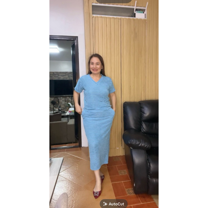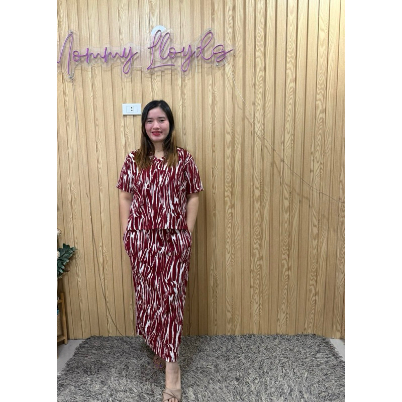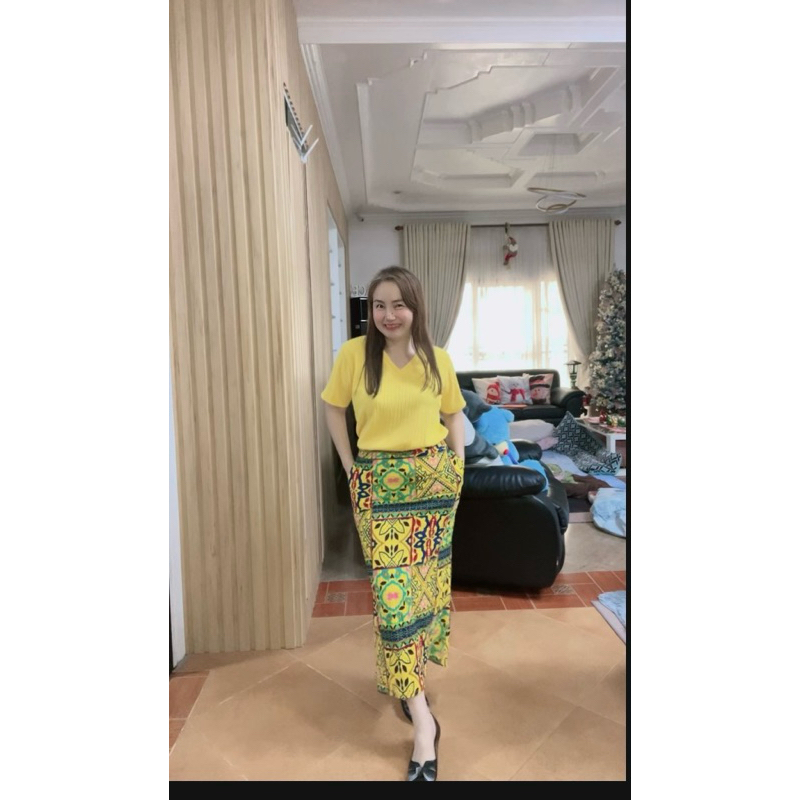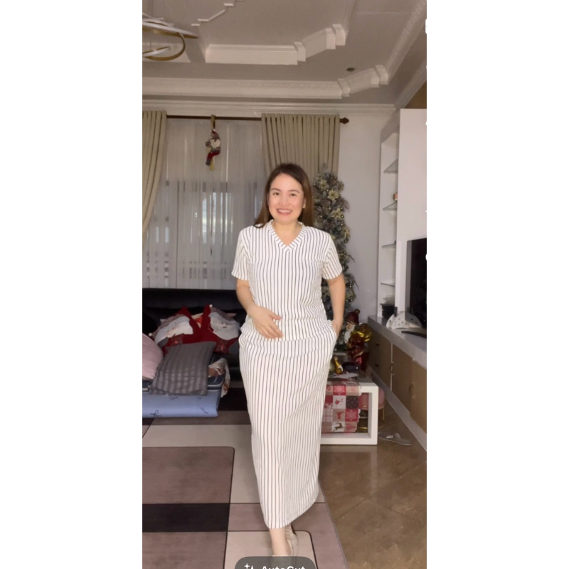 COLINE terno vneck shirt and maxi skirt Large to 2XL barkcrepe