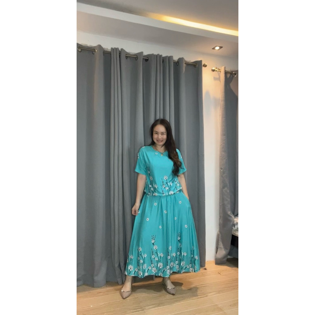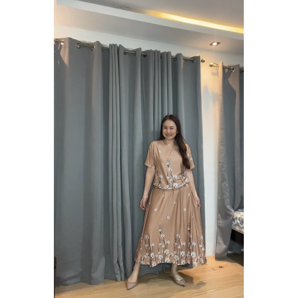 VHENNY terno blouse with garter and skirt maxi cotton spandex