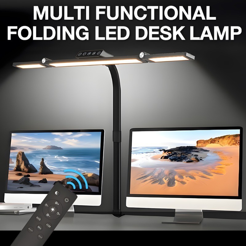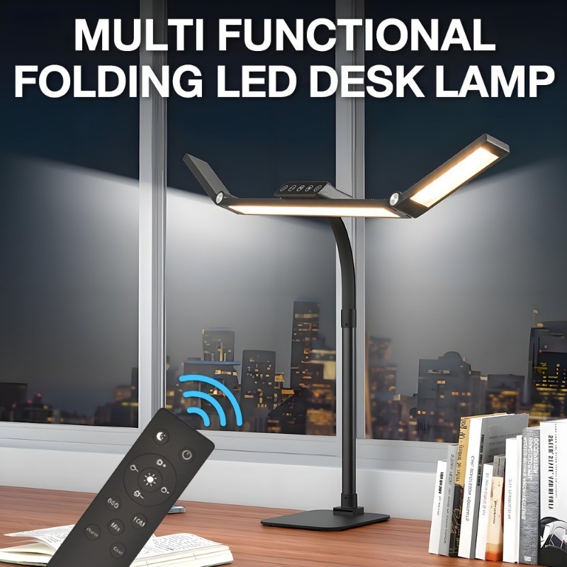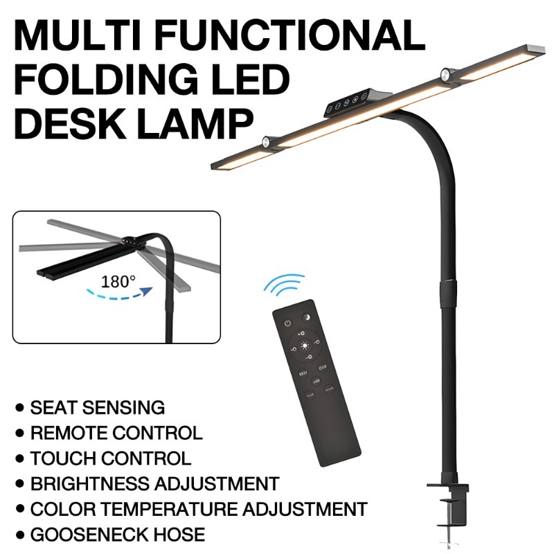 10 Dimmable Levels LED Desk Lamp with Remote Sensor Flexible Gooseneck Double Head Desk Light it automatically adjusts brightness based on ambient light.