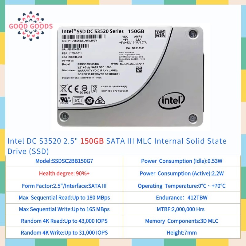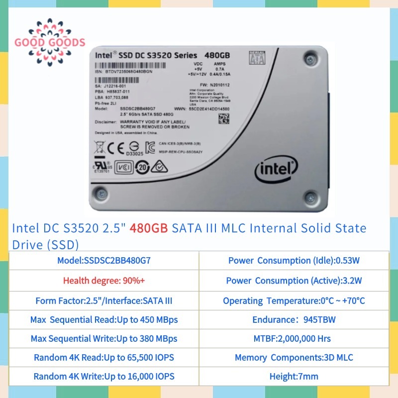 Intel DC S3520 2.5" 120GB 150GB 240GB 480GB SATA III MLC Internal Solid State Drive (SSD)