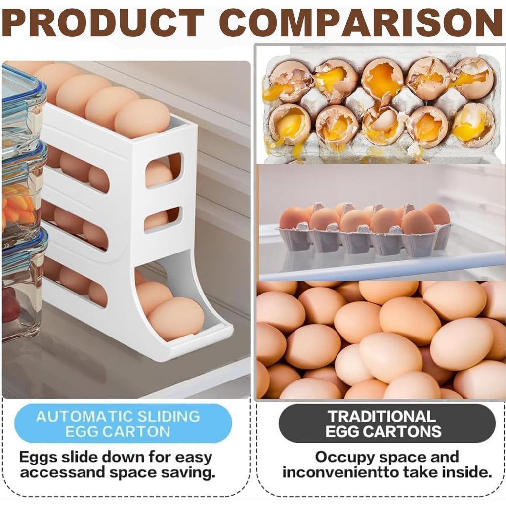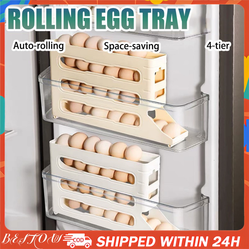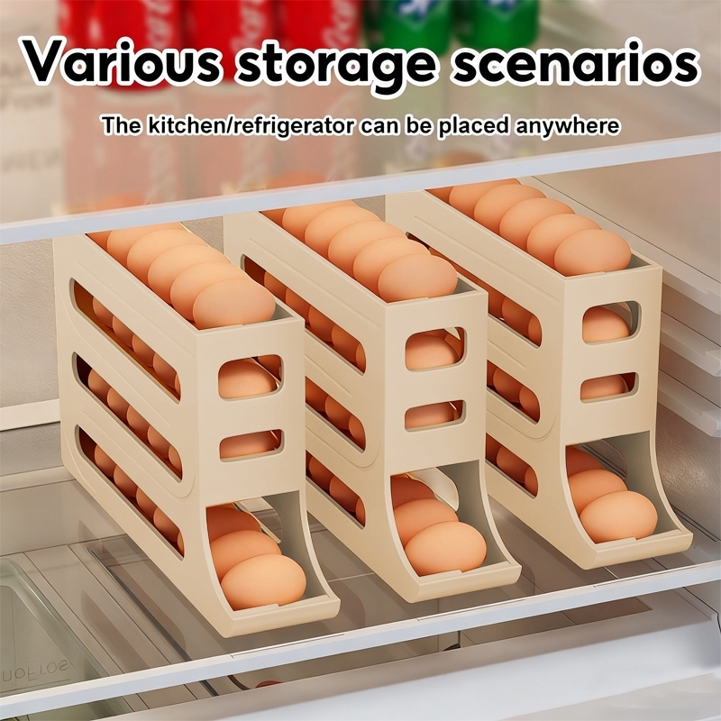 4-Tier Automatic Rolling Egg Rack Refrigerator Egg Storage Box Egg Rack Holder Egg Container Kitchen