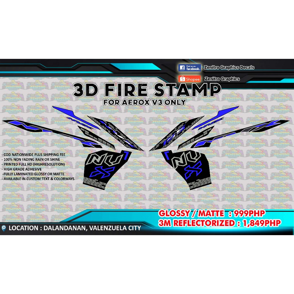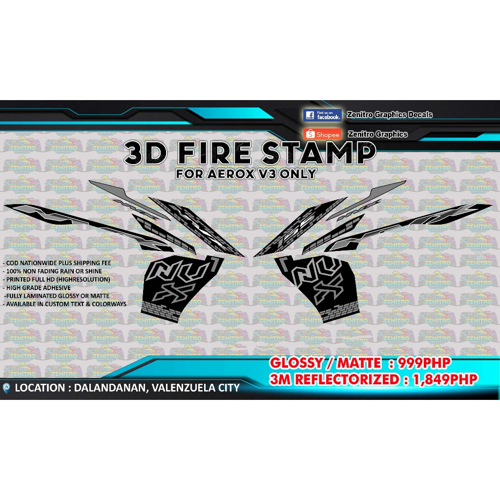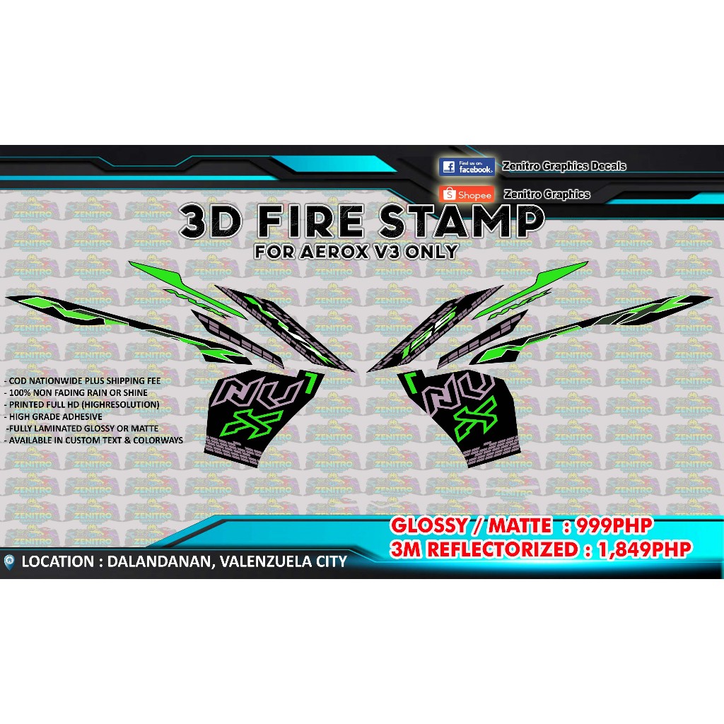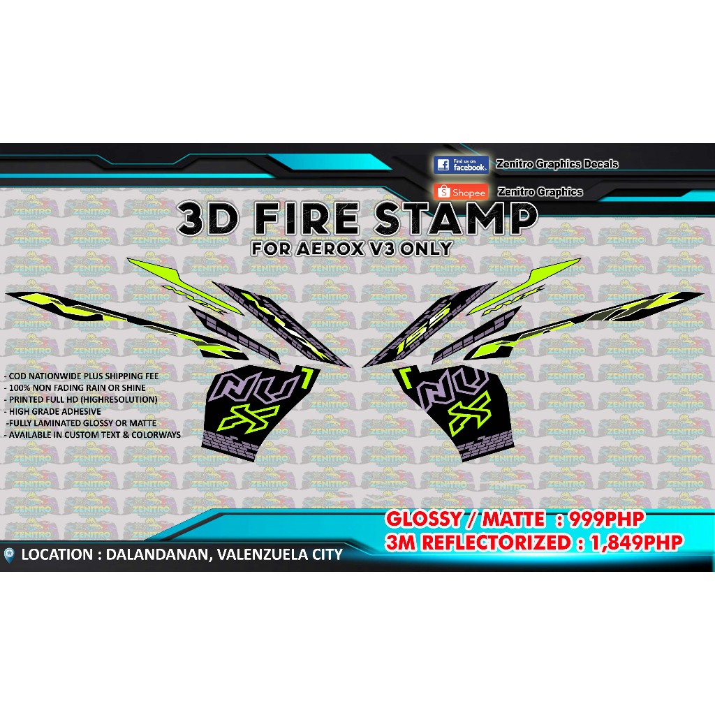 NVX 155 STRIPPING DECALS FOR AEROX V3 (FOR BLACK) ZENITRO GRAPHICS DECALS