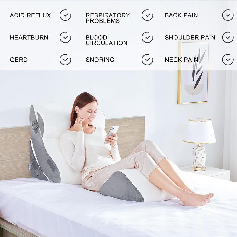 Big Wedge Pillow Acid Reflux Heartburn Relief Back Waist Pain Support Adjustable Removable Cover