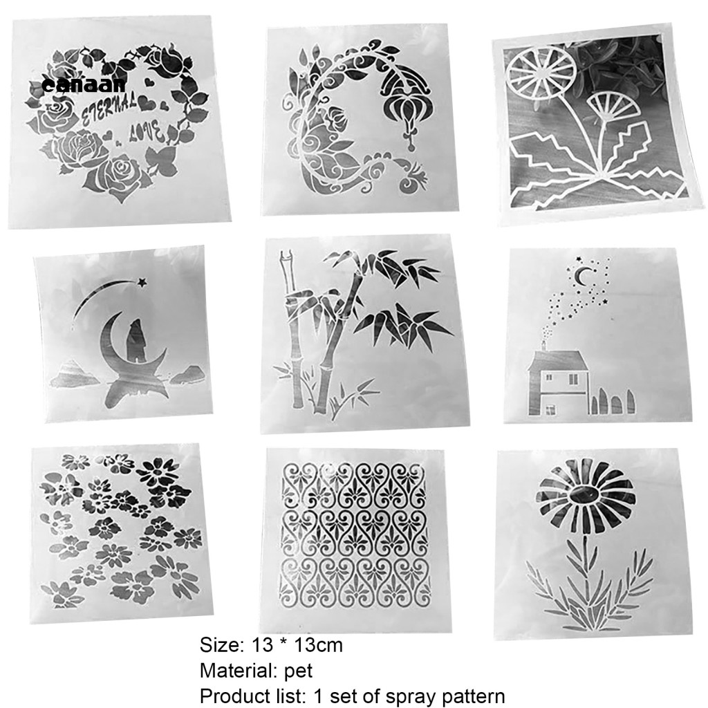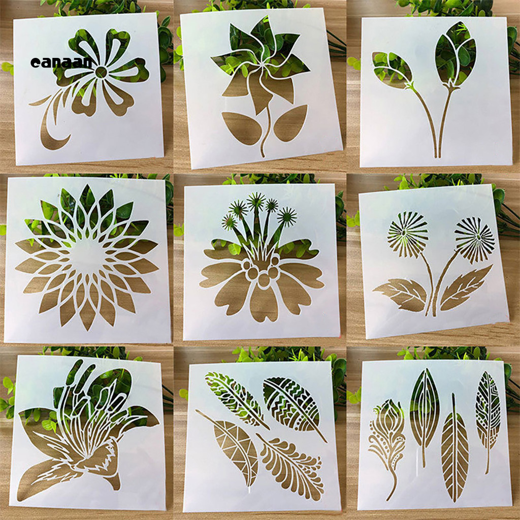 canaan| 1 Set Painting Stencil Flower Pattern Multifunctional PET Paper Craft Painting Template for Wall Art