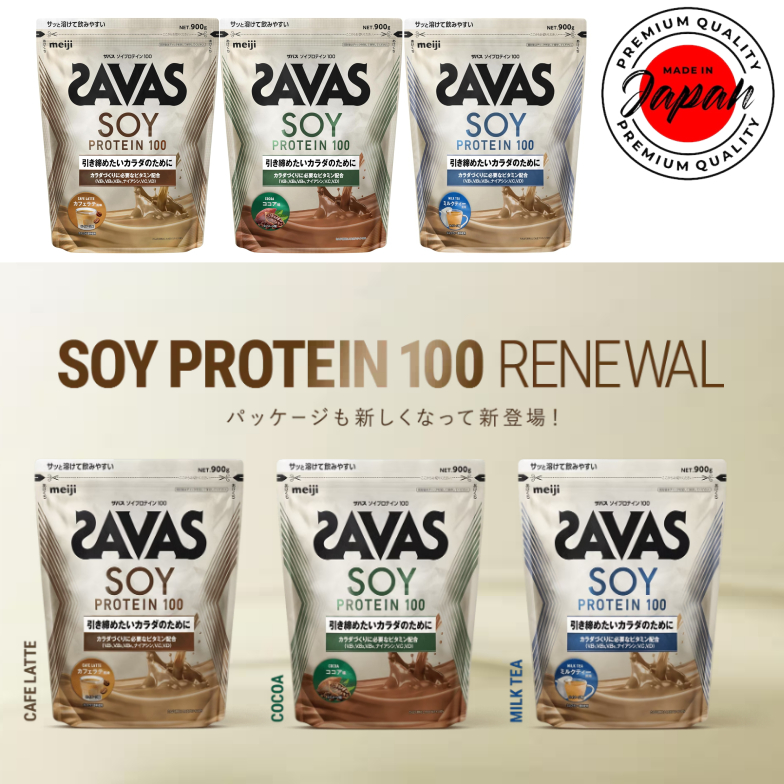 SAVAS SOY Protein 100 [Cafe latte/Cocoa/Milk tea flavor] (900g/224g) Meiji Made in Japan for men women child diet Gym Muscle training Made in Japan Free shipping direct from Japan