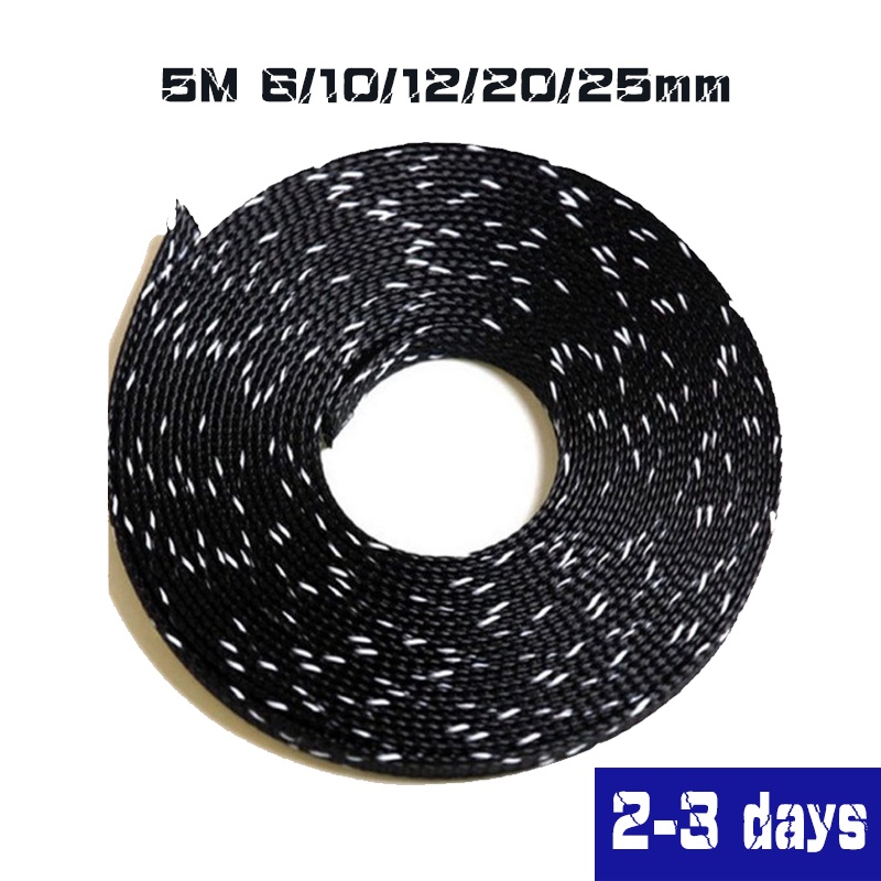 5M 6/10/12/20/25mm PET Expandable Cable Sleeves Insulated Braided Sleeving Wire Cables Protective Sheath