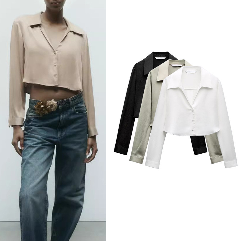 Zhaolin Spring New Style Women's Temperament All-Match Loose Silk Satin Texture Short Shirt 2298175 711