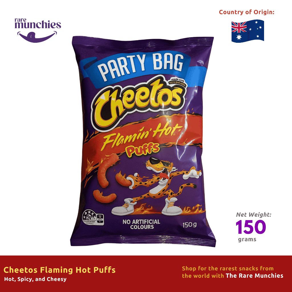 Cheetos Flamin’ Hot Puffs Party Bags 150g – Spicy Cheese Snack from Australia AU