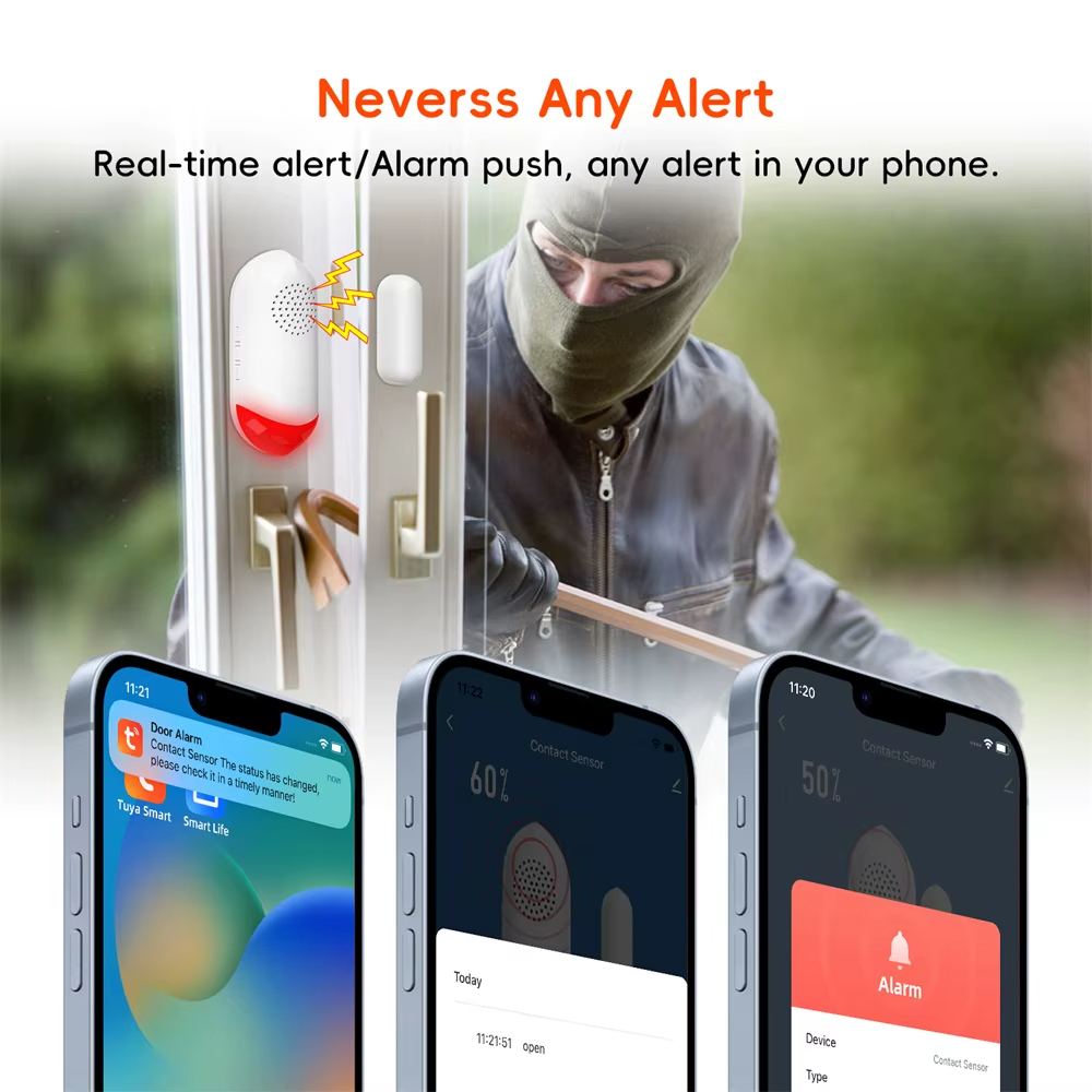 TUYA WIFI Smart Alarm 120 dB Door and Window Sensor Alarm Magnetic Alarm Security Siren Flash Lamp