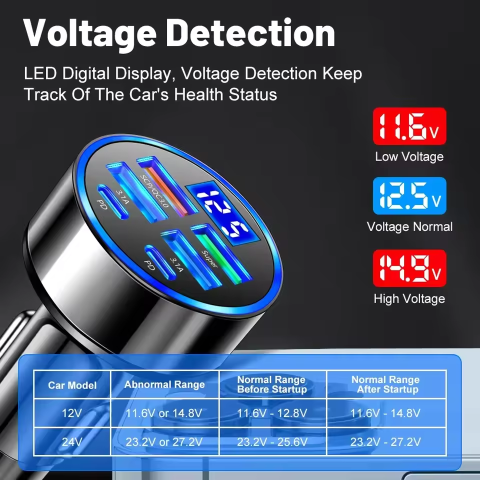6 Ports Car Charger Fast Charging PD QC3.0 USB C Adapter for iPhone in Car