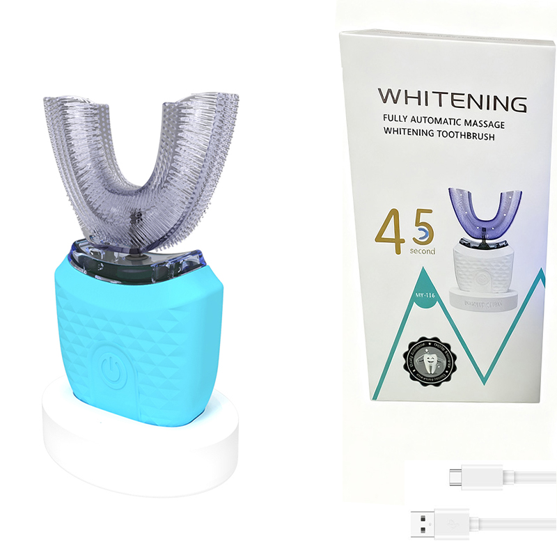 Rechargeable U-Shaped Sonic Electric Toothbrush with Automatic Timer and Silicone Bristles for Teeth Whitening