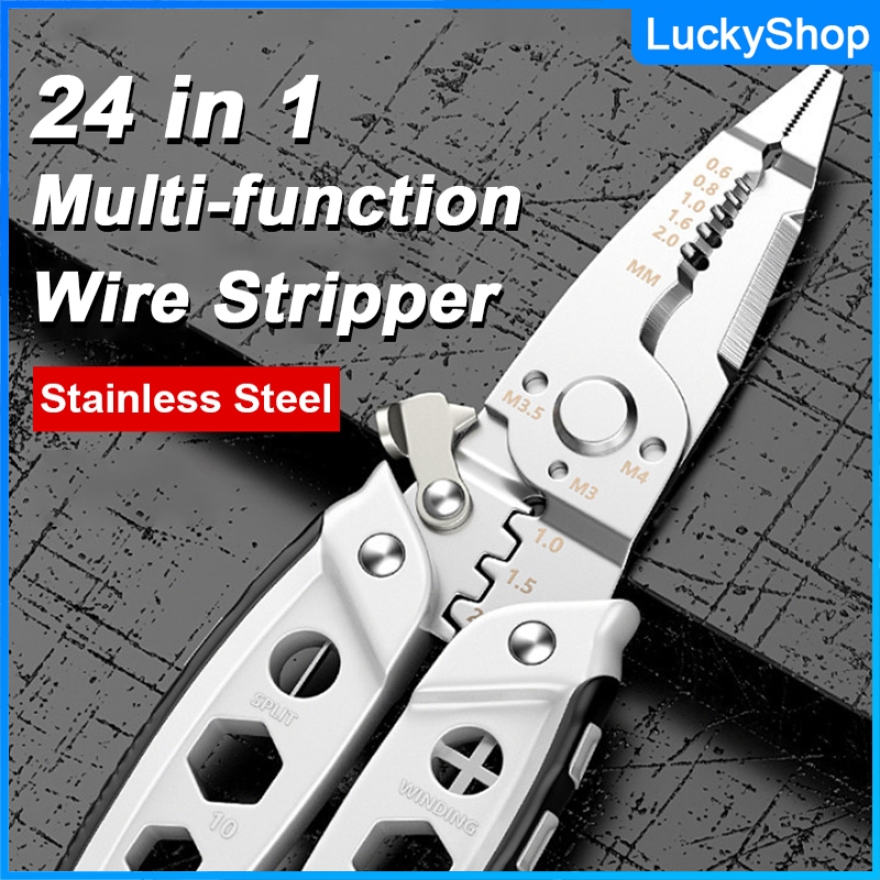 24 in 1 Electrician Crimpe Pliers Wire Stripper Cutter, Stainless Steel Wire Stripping Tool