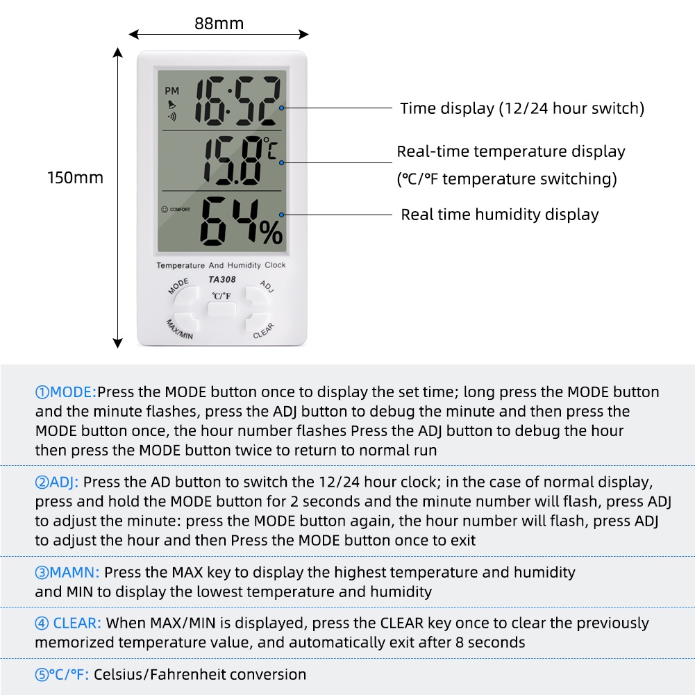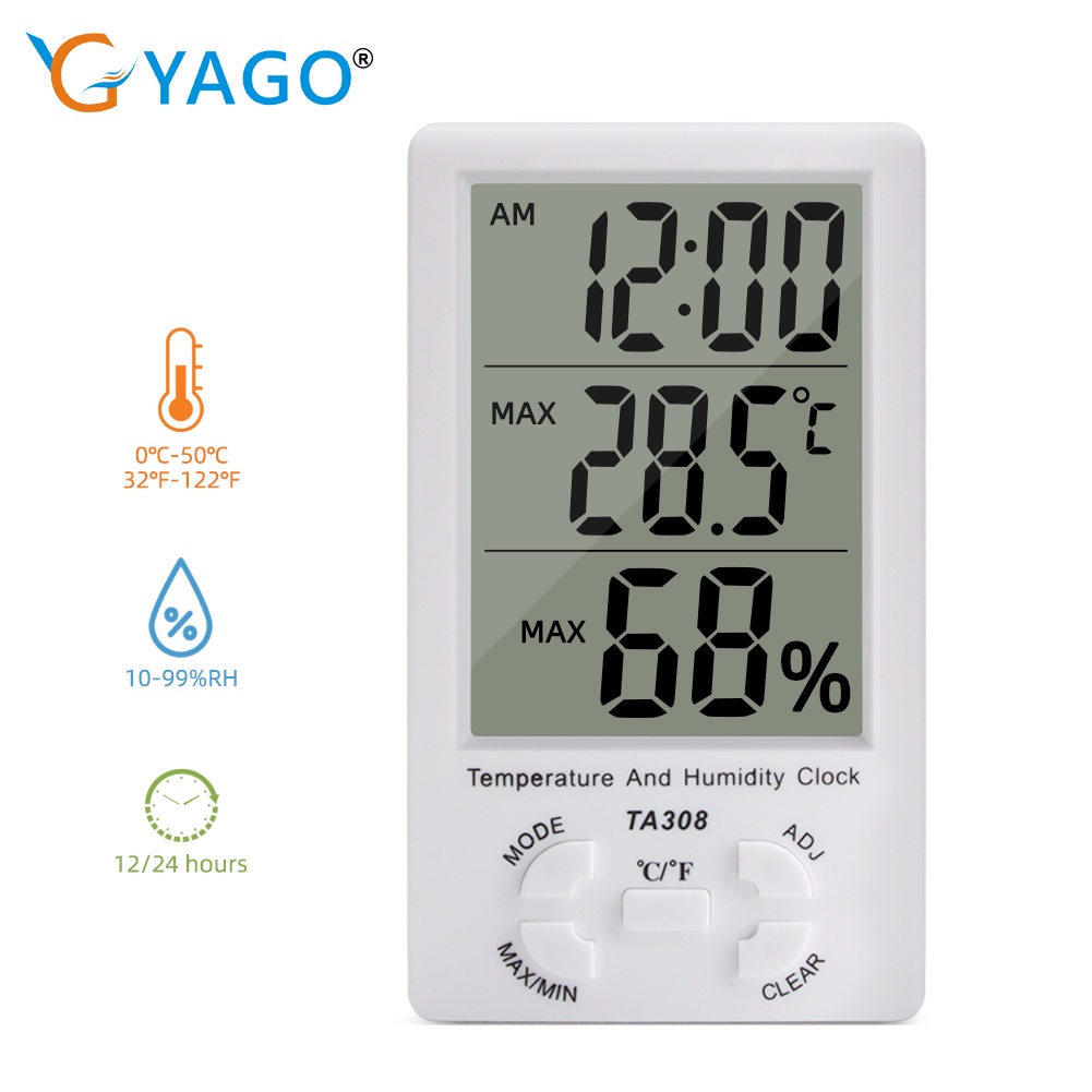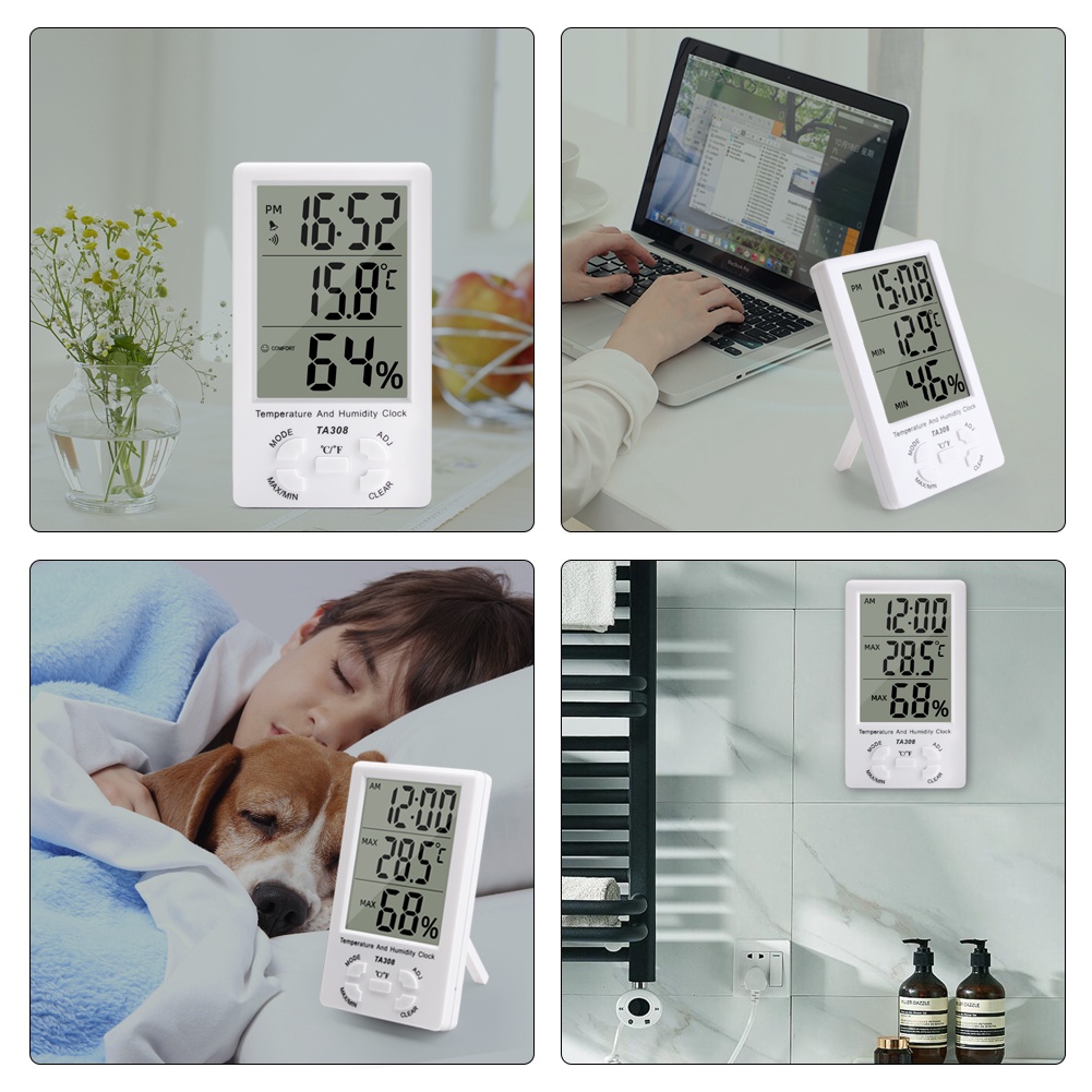 Digital large LCD screen clock temperature and humidity meter TA308 indoor and outdoor household temperature and humidity meter / clock / thermometer / hygrometer