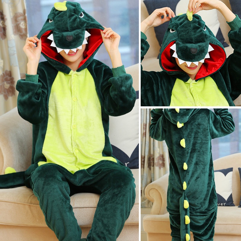 Kigurumi Dinosaur Pikachu Stitch Onesies Kids Children Flannel Pajamas Jumpsuits Women Men Sleepwear Onepiece Cosplay Costumes
