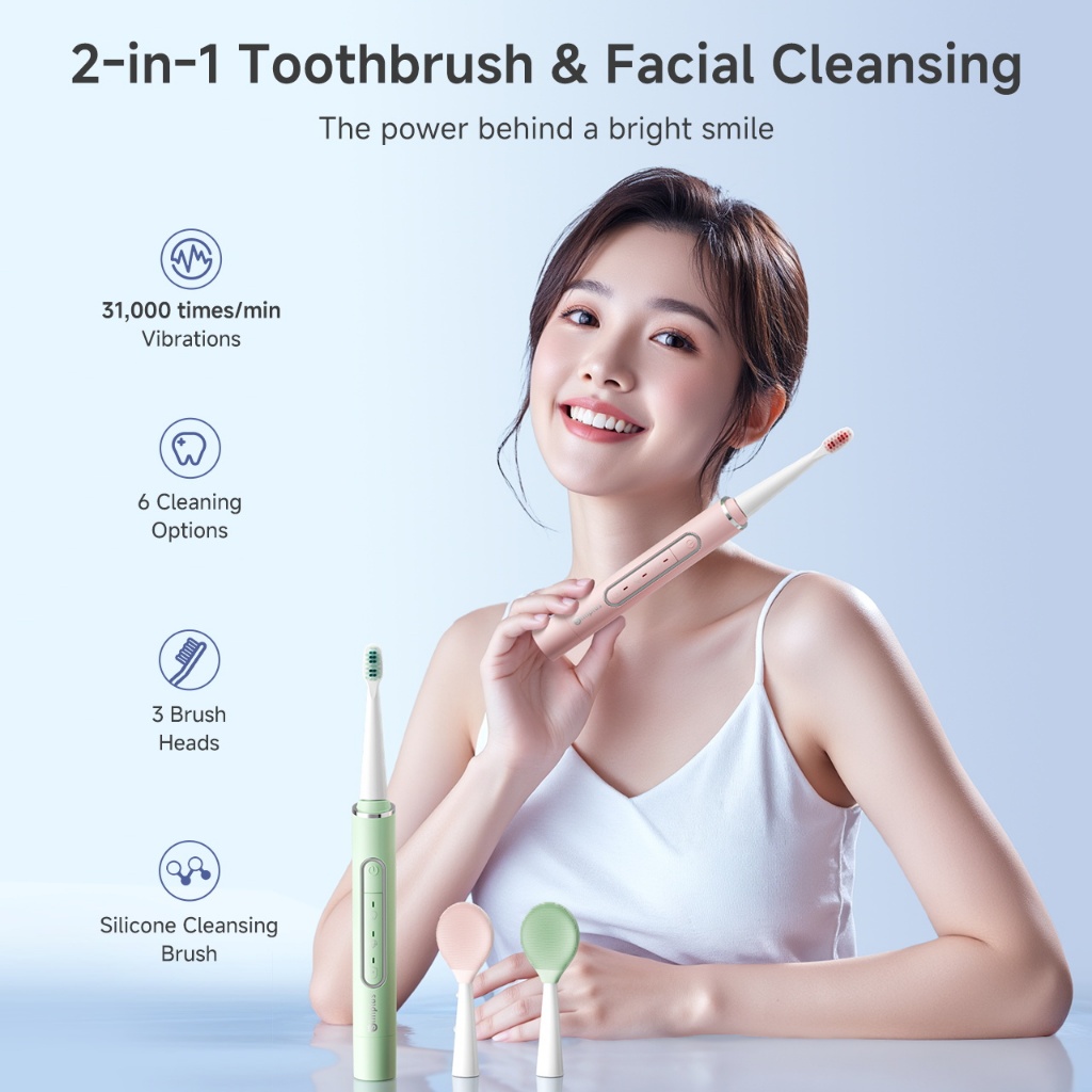 SimplusPink 2-in-1 Sonic Electric Toothbrush – 6 Modes DuPont Head & Face Brush, USB Charging IPX7
