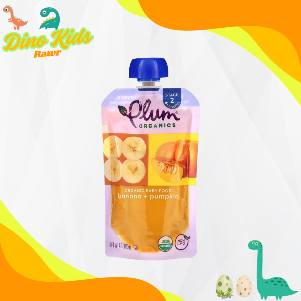 Dino Kids Rawr | Plum Organics, Organic Baby Food, 6+ Months, Banana + Pumpkin, 4 oz