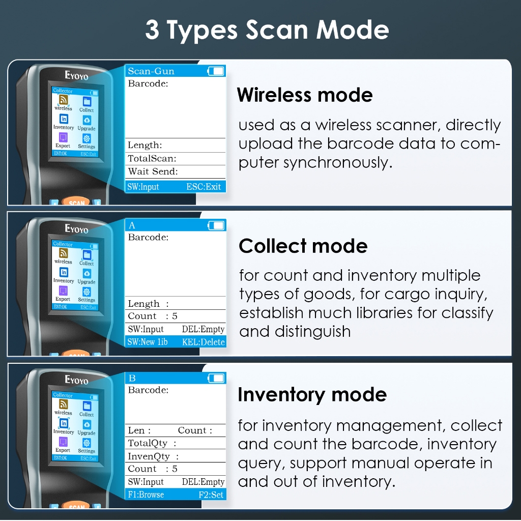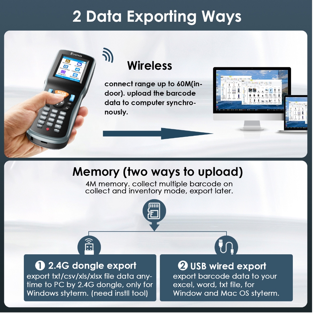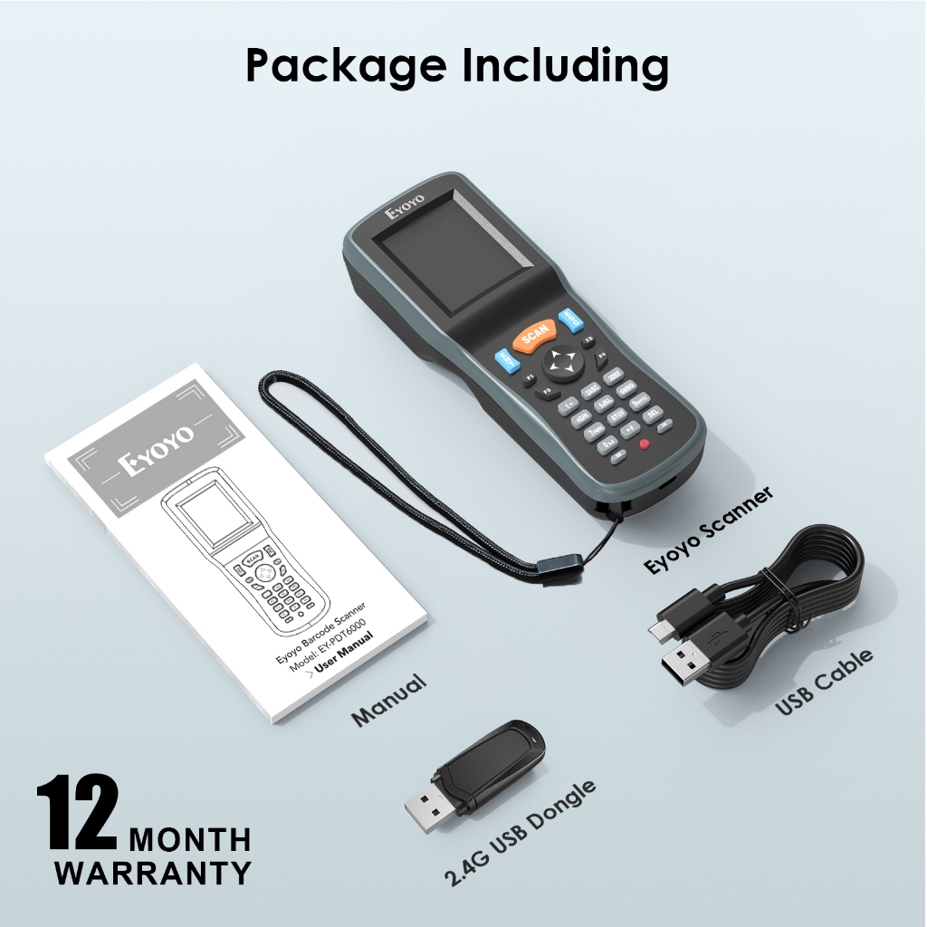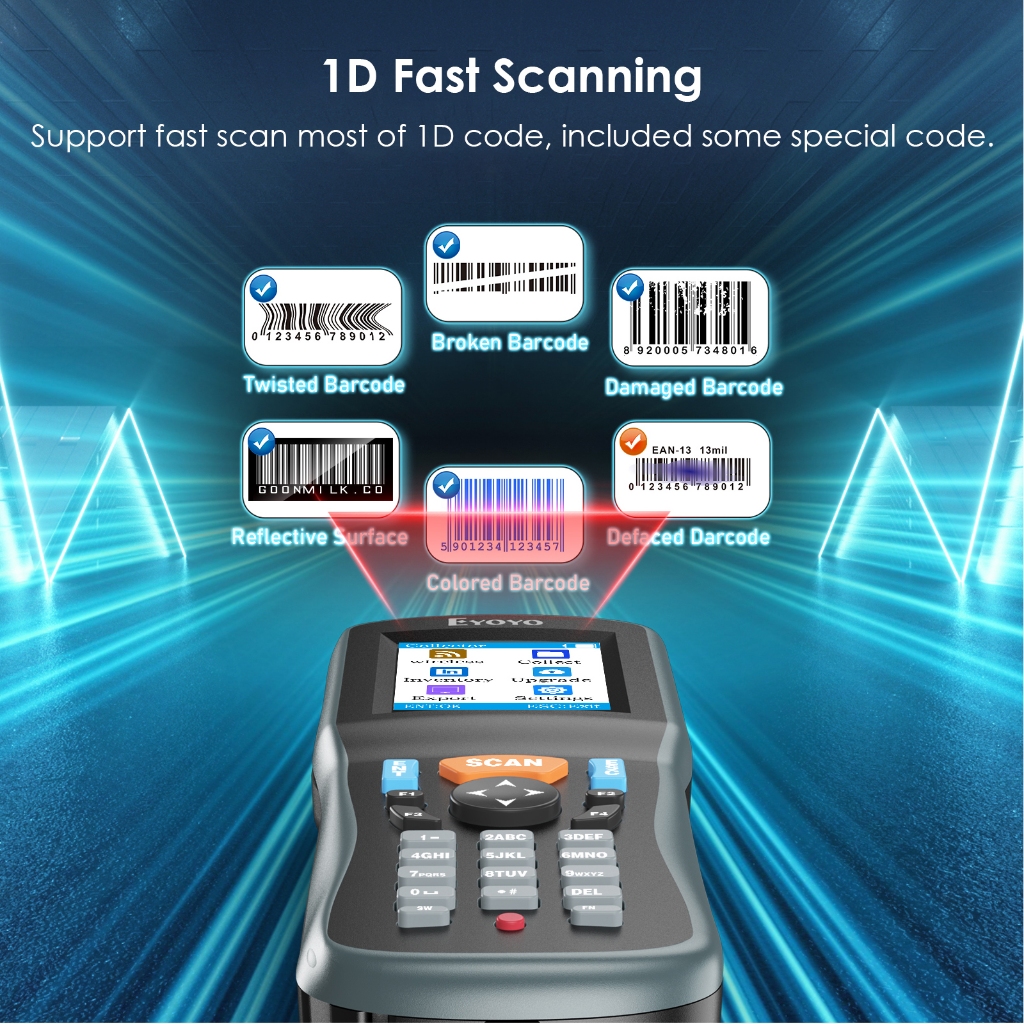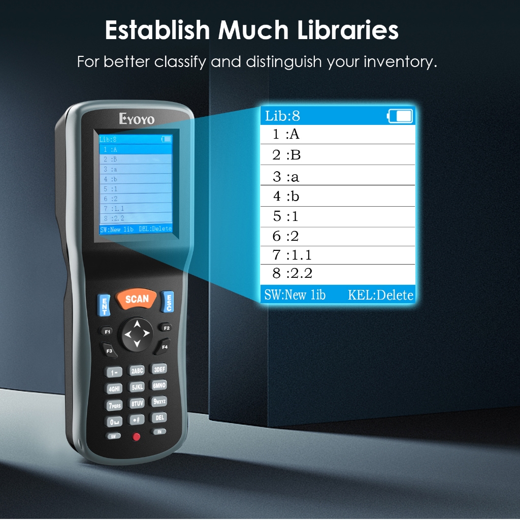 Eyoyo Portable Inventory Scanner Data Collector QR1D 2D Wireless Barcode Scanner Terminal Inventory Device with 2.2 inch TFT Color LCD Screen