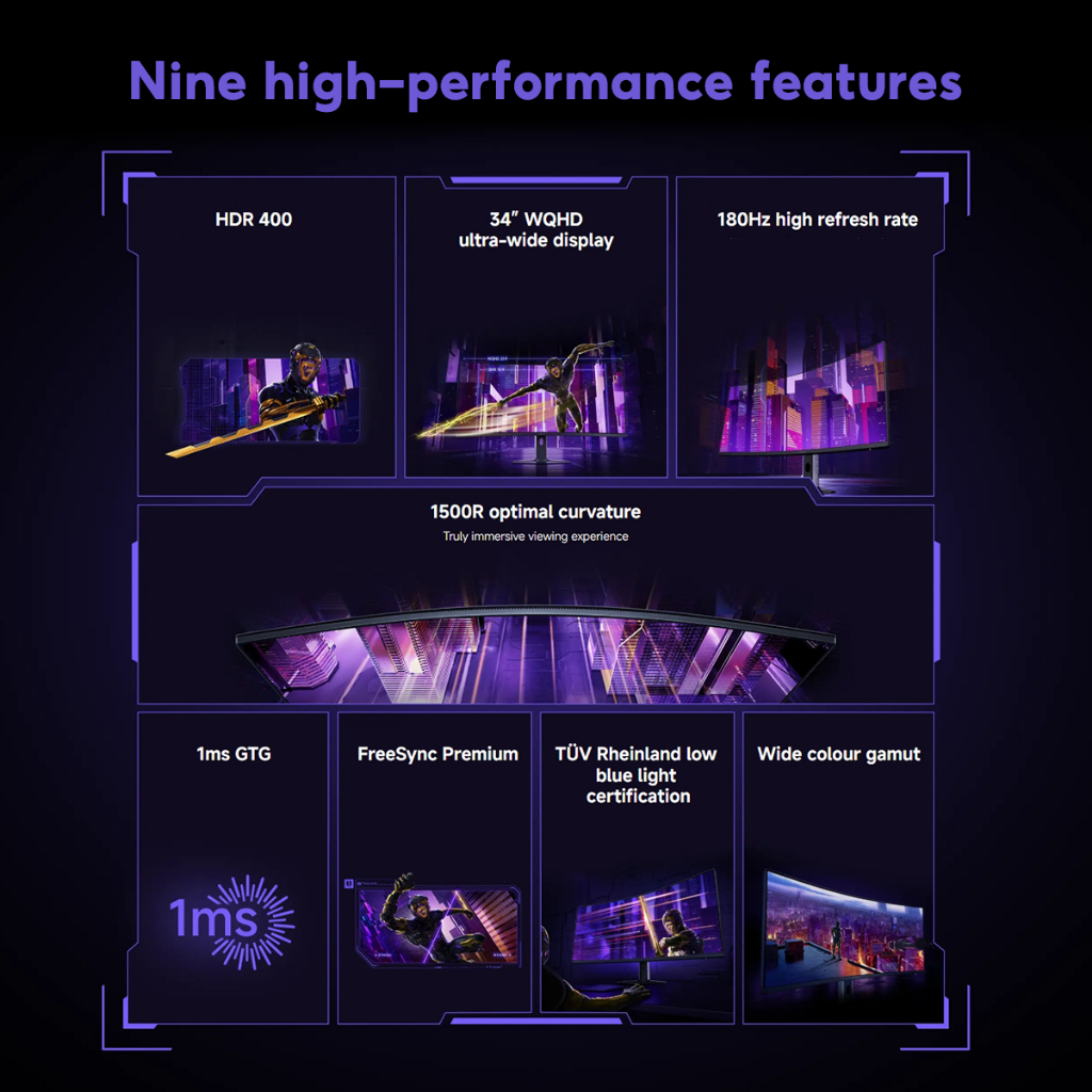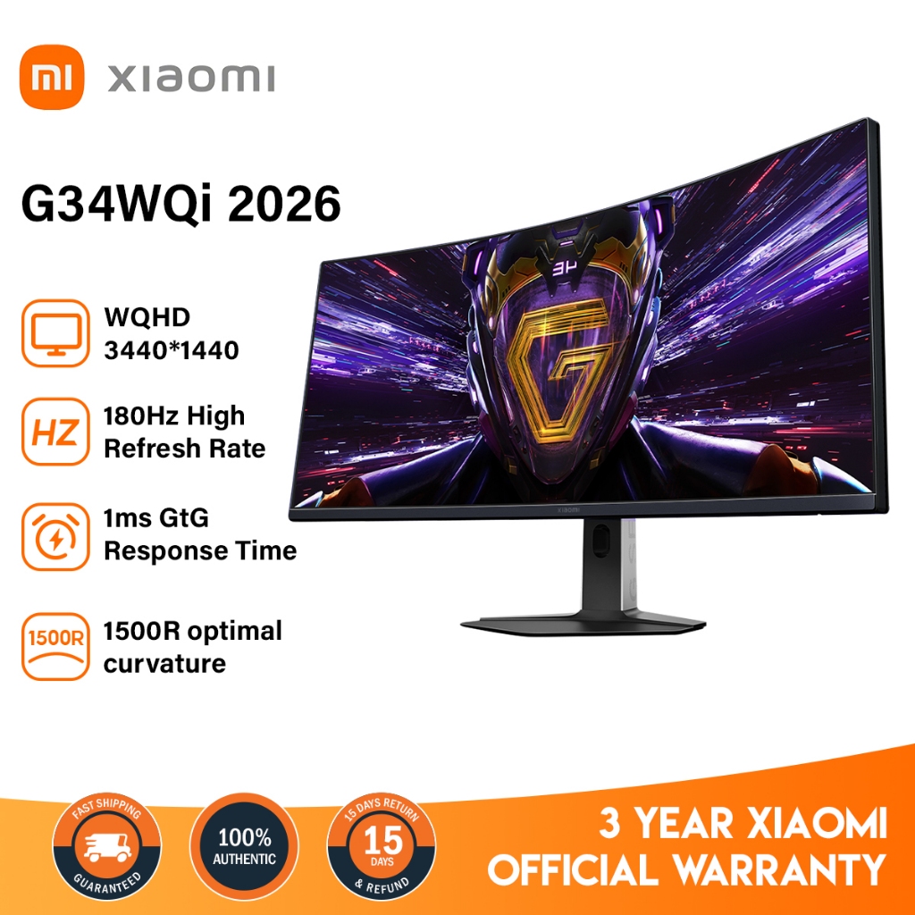 [3 Years Warranty] Xiaomi 34 Inch Curved Gaming Monitor G34i WQHD 180Hz Refresh Rate Low Blue Light