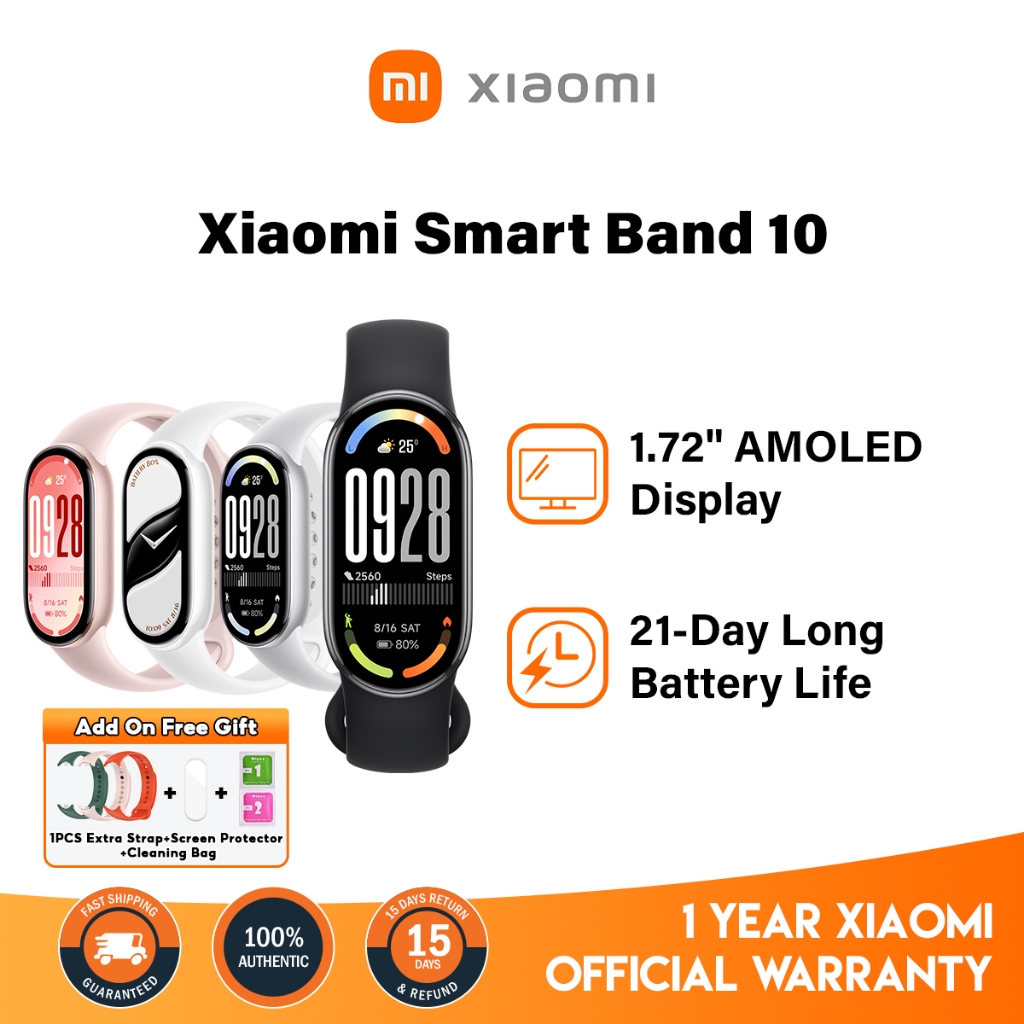 [1 Year Warranty] Xiaomi Smart Band 10 Smartwatch 1.72" AMOLED Screen Metallic Frame 5ATM