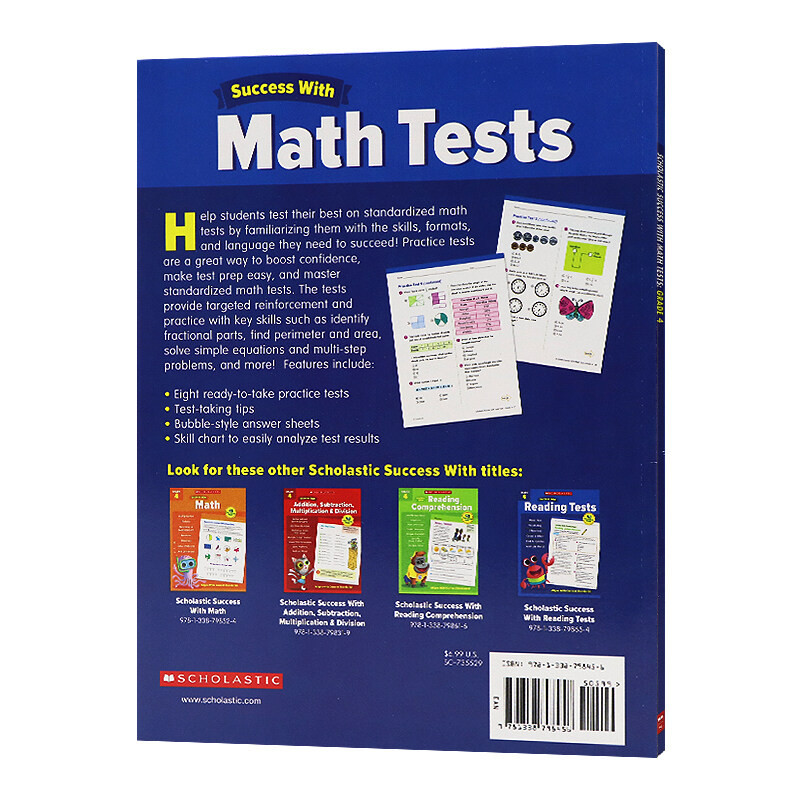 Scholastic Success with Math Tests Grade 4 Paperback Coloring Workbook by Scholastic Teaching Resources