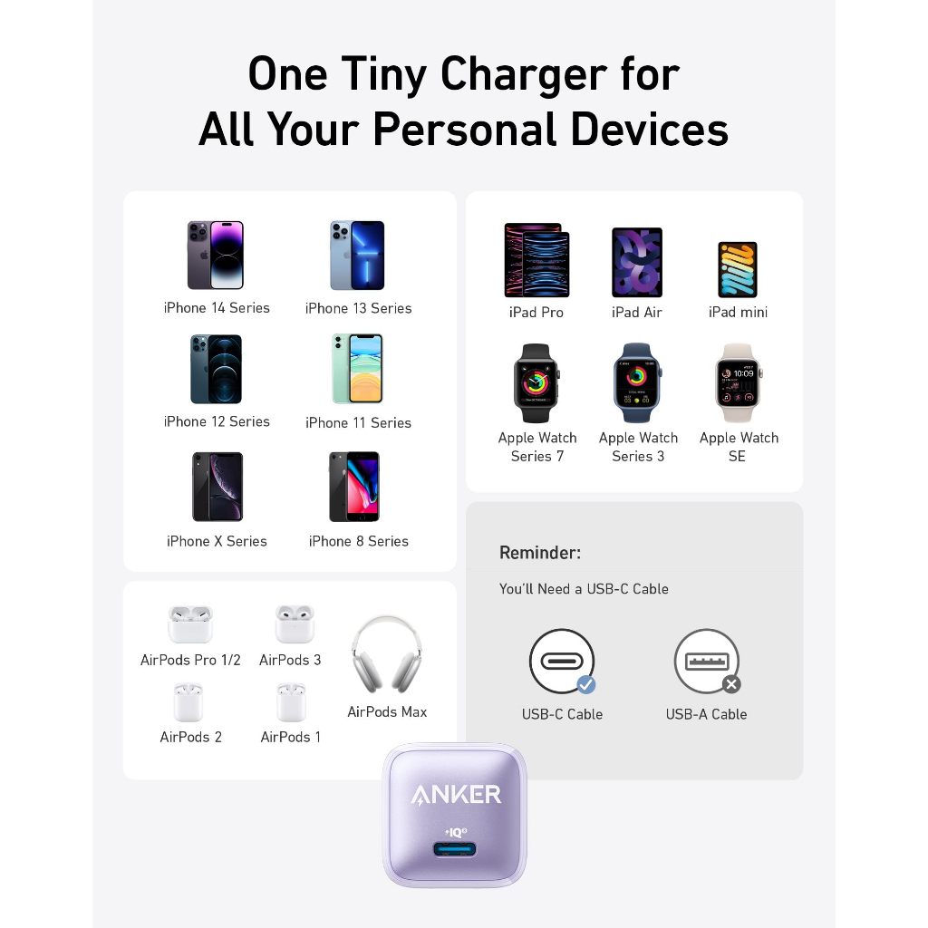 Anker Nano Pro 20W USB C 511 Charger PIQ 3.0 Fast Charging Compact and Durable
