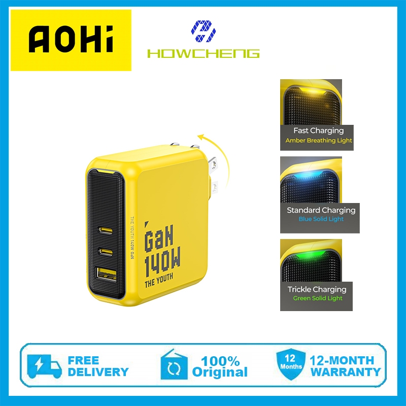 AOHI Youth 140W GaN Charger PD3.1 PPS 3-Port USB C Wall Charger Power Adapter 100W Laptop Fast Charger
