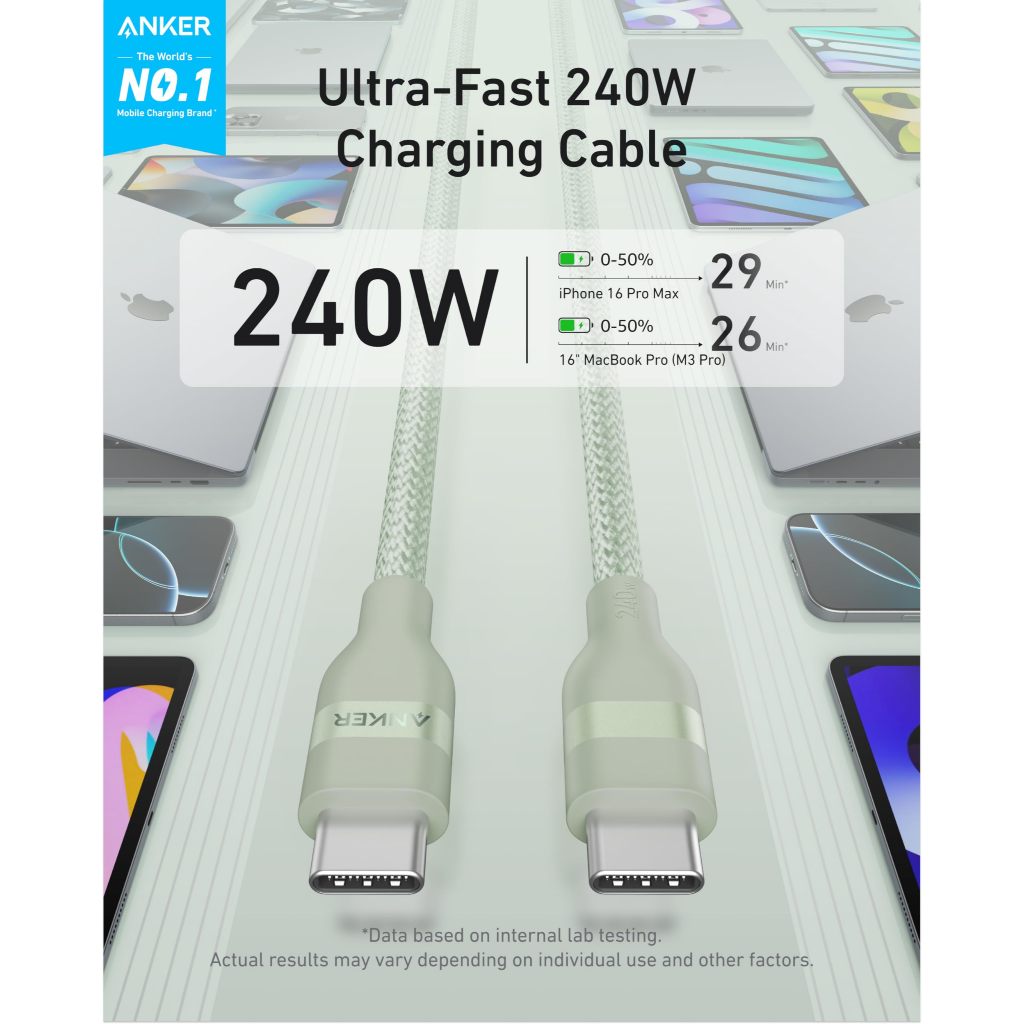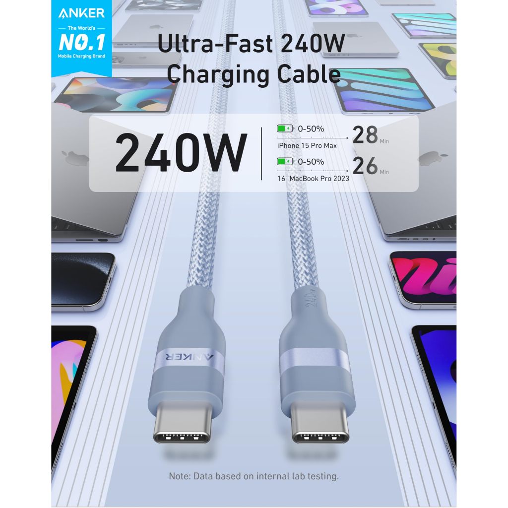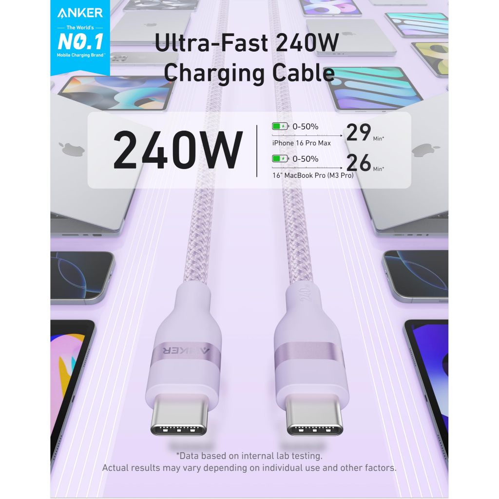 Anker Nano 240W USB C Cable Flexible Multi-Color Braided Cord Fast Charging Type C Charger 0.9m/1.8m