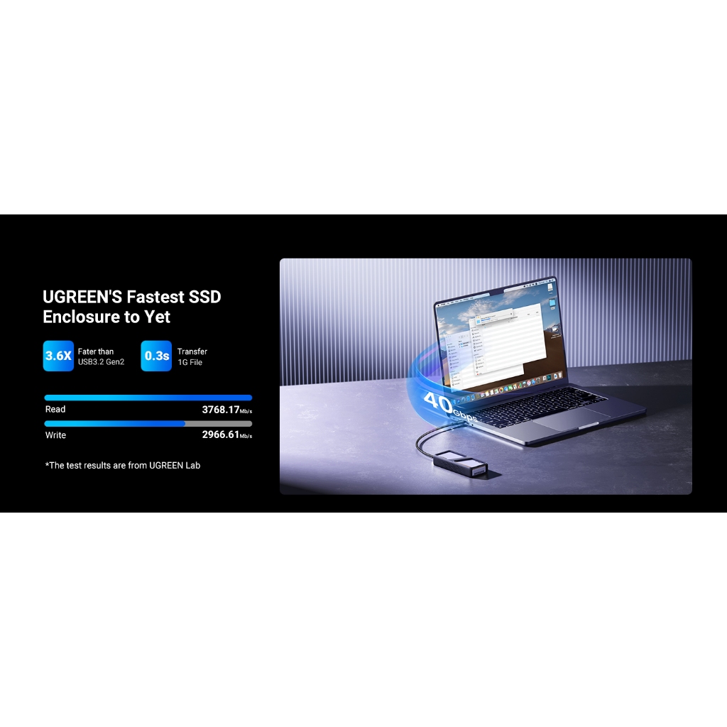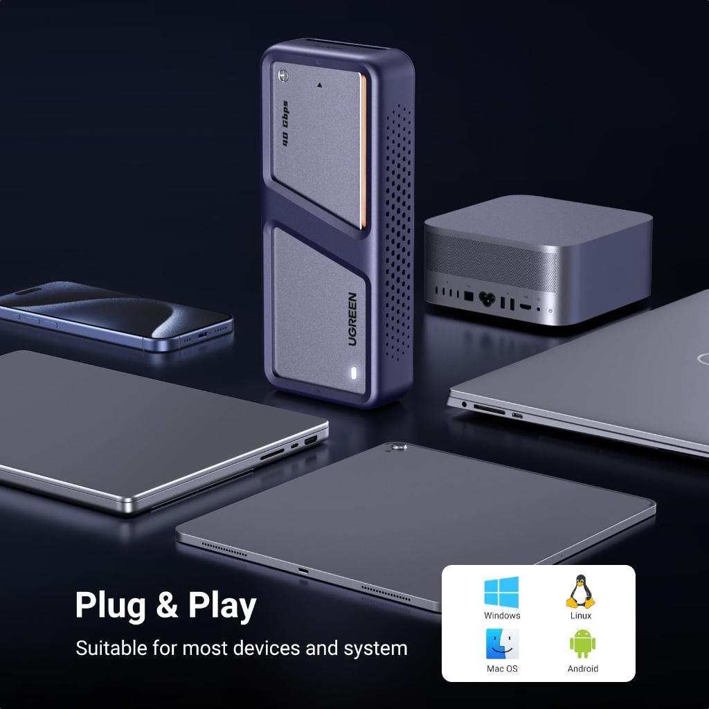 UGREEN 40Gbps M.2 NVMe Enclosure with Cooling Fan, Anti-Drop SSD Enclosure , Aluminum M.2 Enclosure Support M/B+M Key Size 2280/2260/2242/2230 Compatible with Thunderbolt 3/4