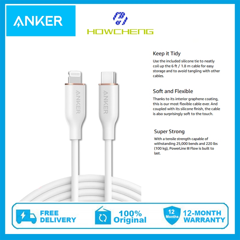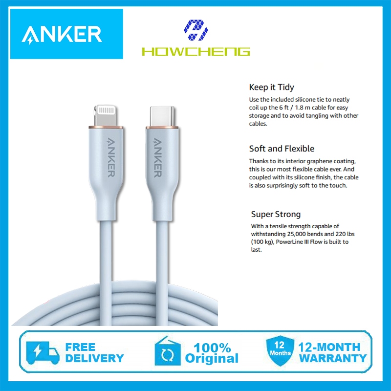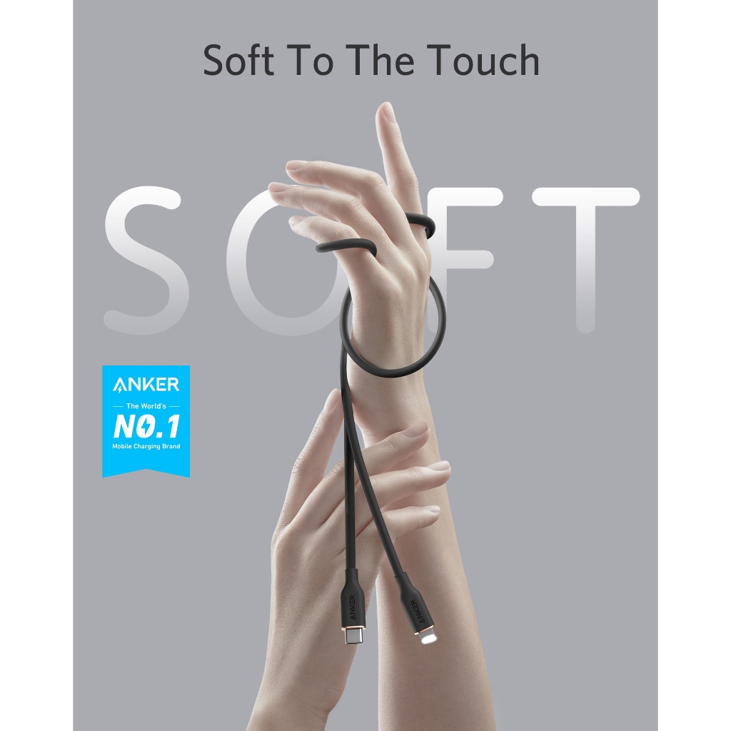 Anker USB-C to L Cable, 641 Cable1.8M MFi Certified Flow Silicone Fast Charging Cable (Charger Not Included)