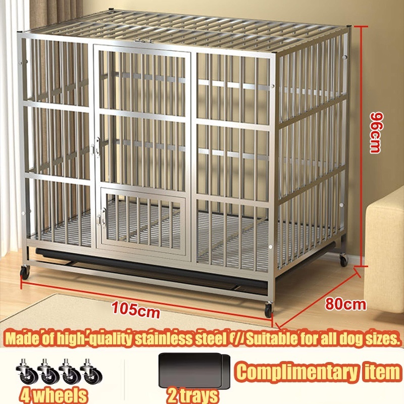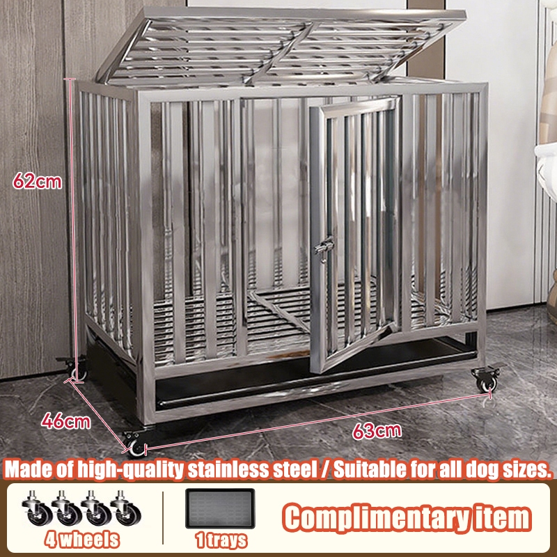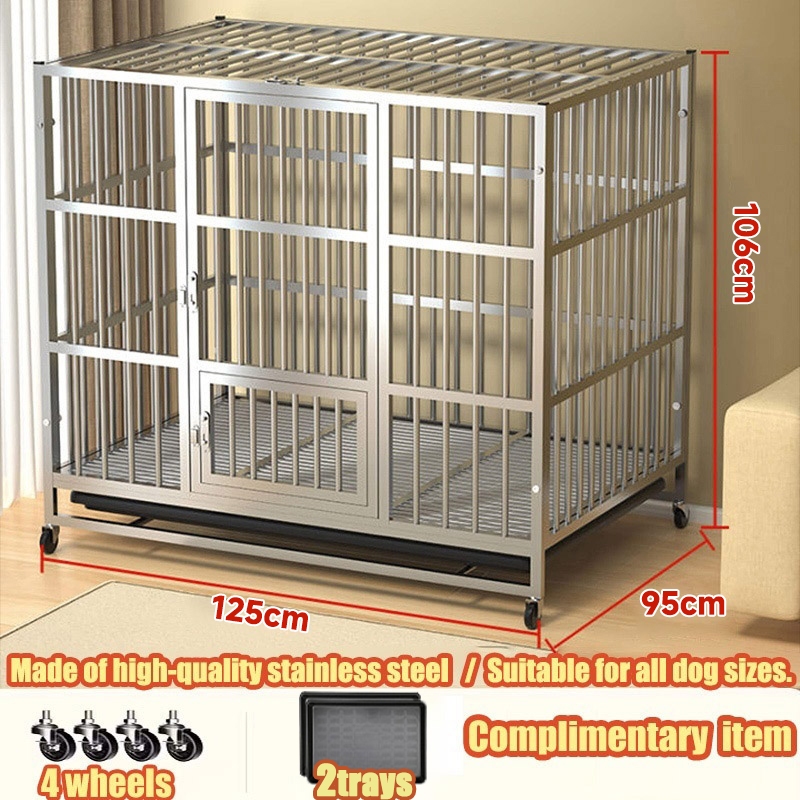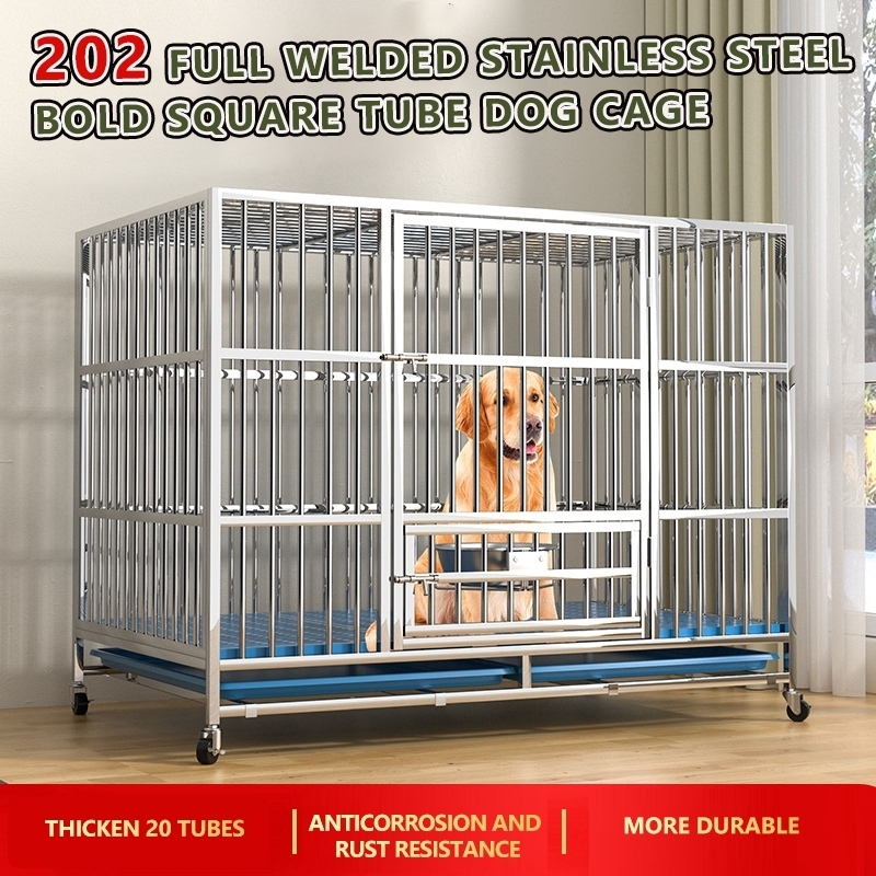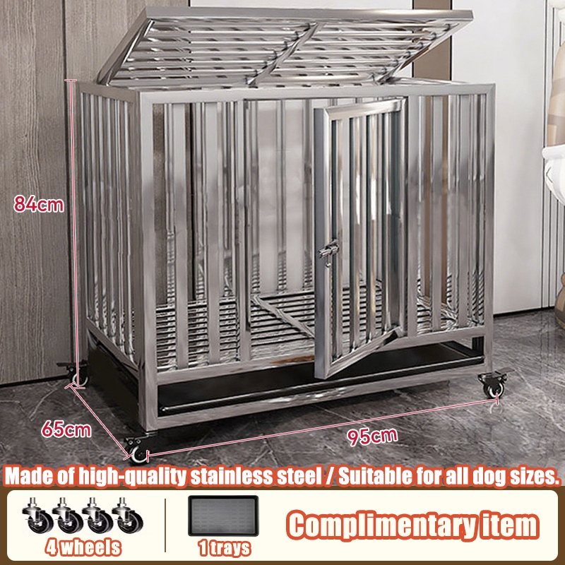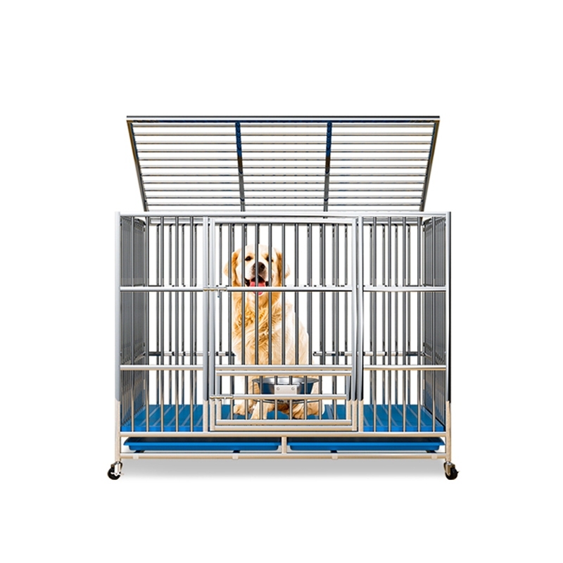 Stainless Large Dog Cage Dog Crate Double Door With Four Wheeled Pet Cage Dog Cage Heavy Duty Steel