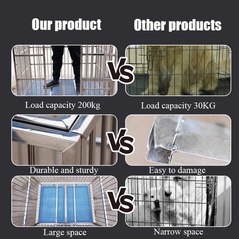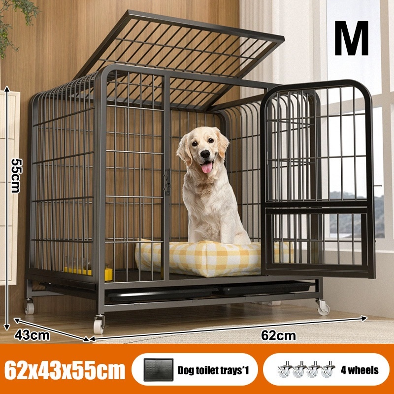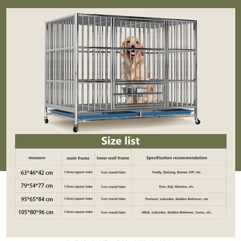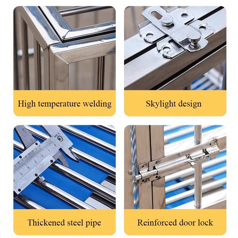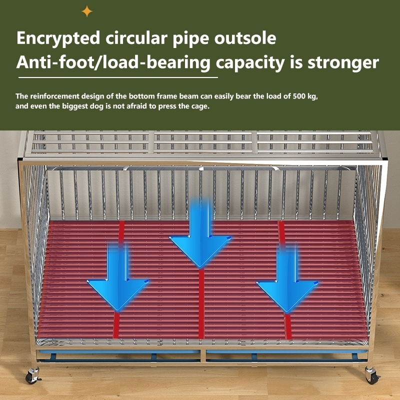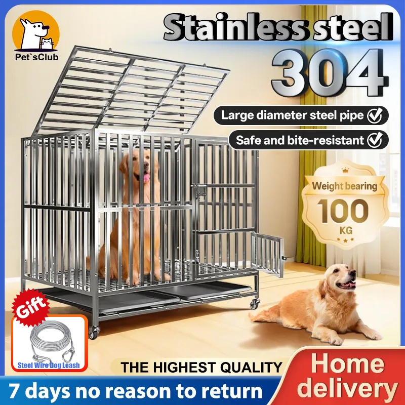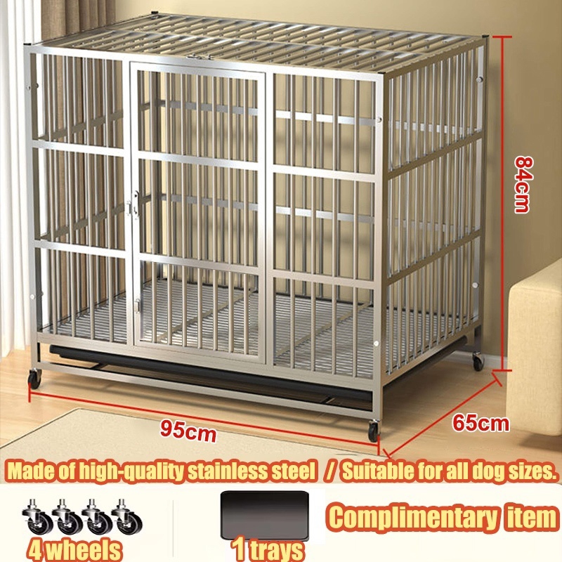 Stainless Large Dog Cage Dog Crate Double Door With Four Wheeled Pet Cage Dog Cage Heavy Duty Steel