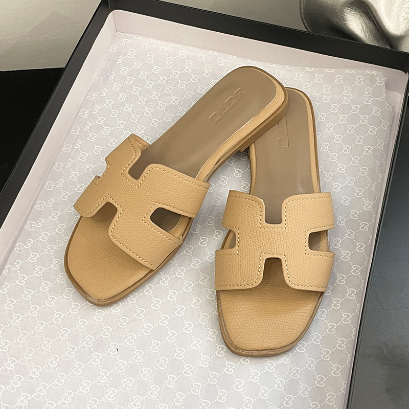 YOTO H-Shaped Strap Sandals For Women Fashionable Leather Versatile Outdoor Flat Sandals