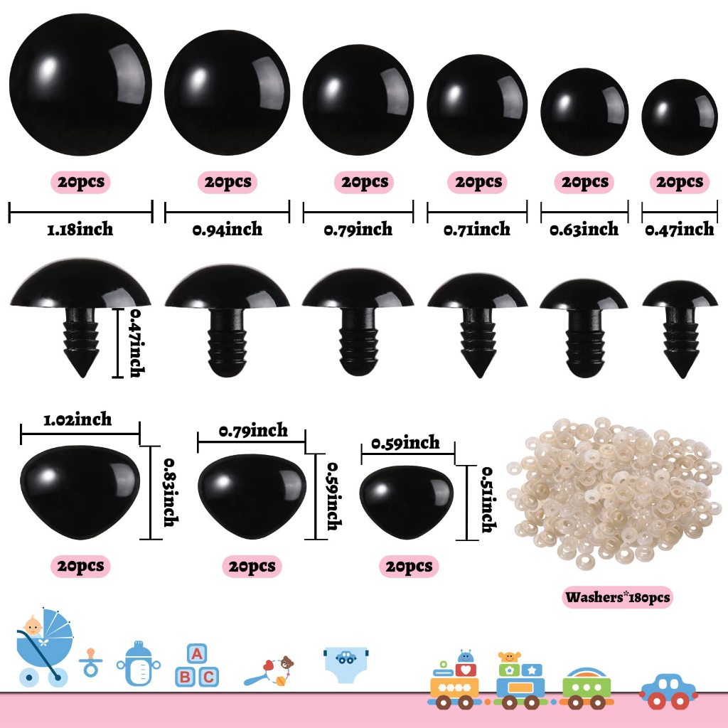 50/100 Pairs 5-18mm Black Safety Eyes for Stuffed Toys, Dolls, Bears – DIY Craft Accessories