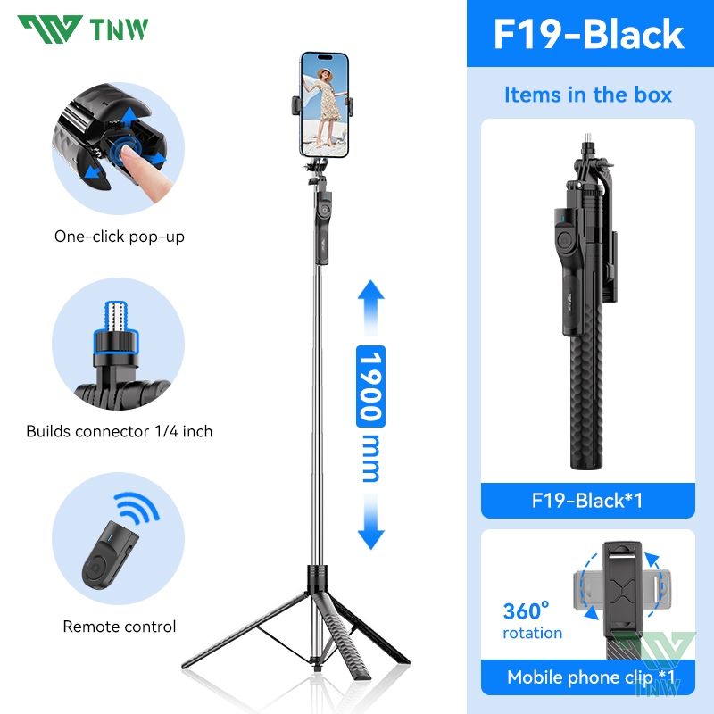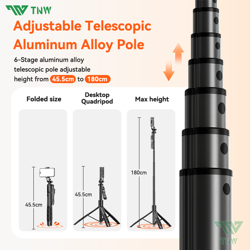 TNW L16PRO Tripod Bluetooth Selfie Stick Auto-open Camera Tripod 1800mm With Remote Control For Vlog