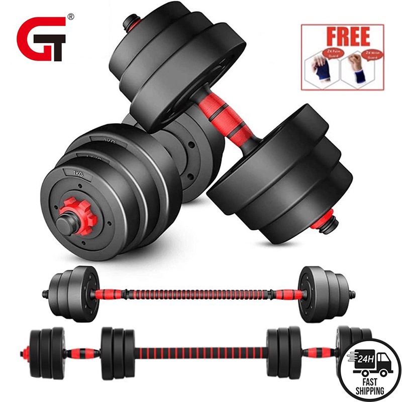 Dumbbells Pair Detachable 20kg/30kg/15kg/10kg Barbell Set Pvc Gym Equipment 2 In 1